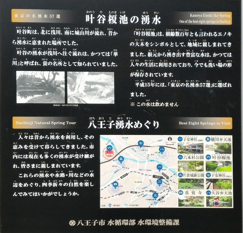 八王子の湧き水の一つ、叶谷榎池(かのうやえのきいけ)です。