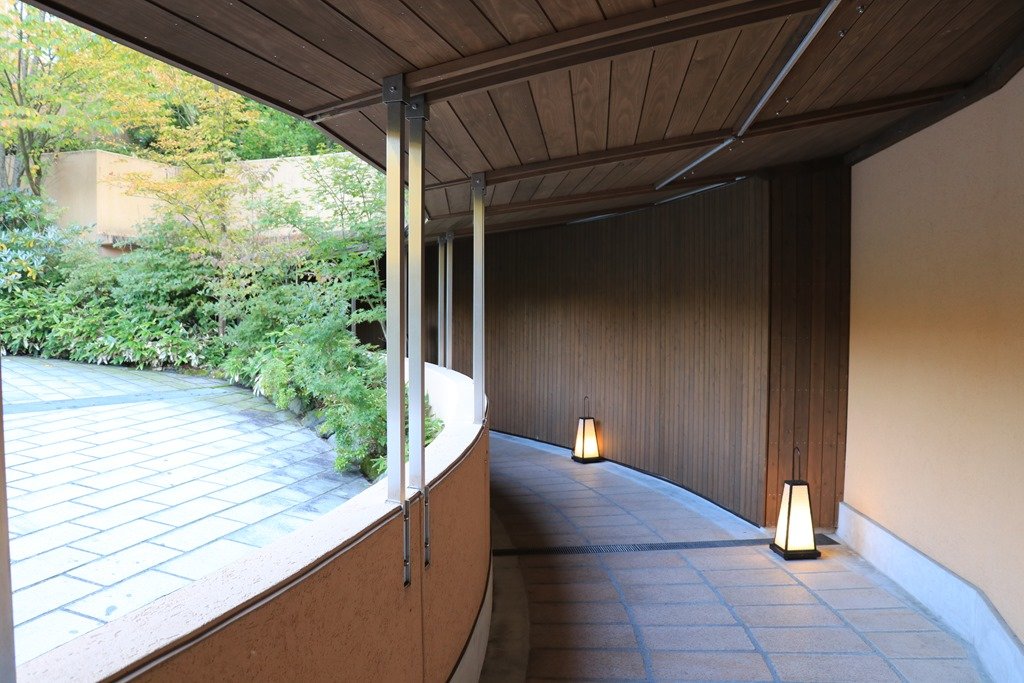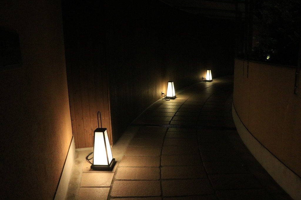 夕食時になると本館への渡り廊下は行灯が灯り粋な雰囲気に変わります。