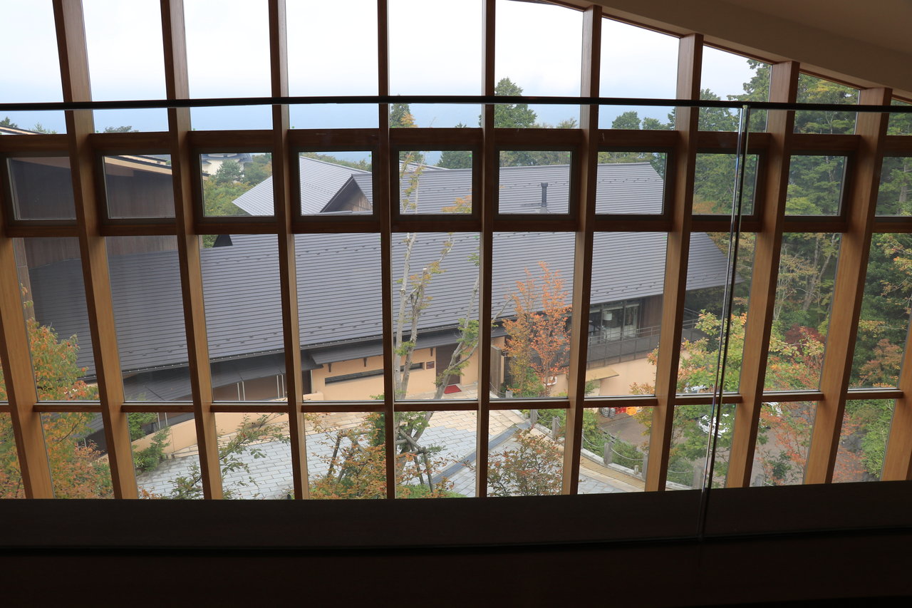 チャノン箱根館別館から見下ろした本館ロビー・レストラン