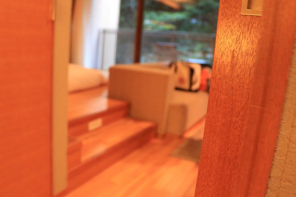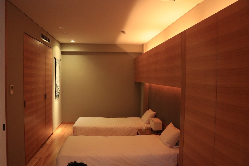 吹き抜けがある建物は家内と泊まった別館宿泊棟です。