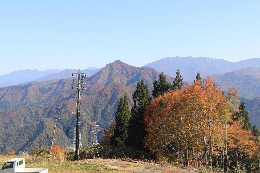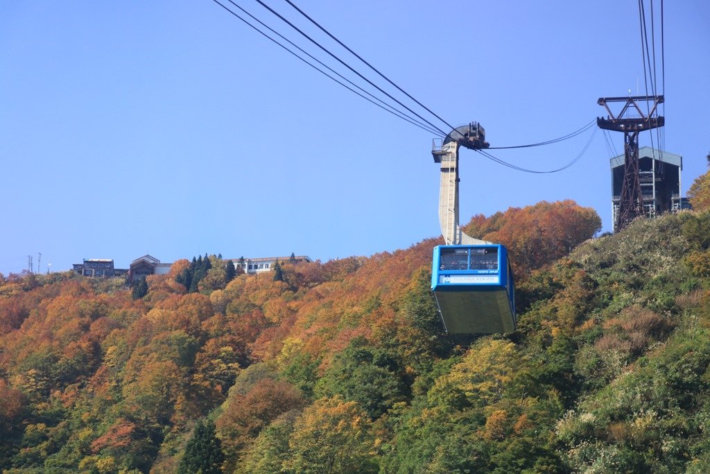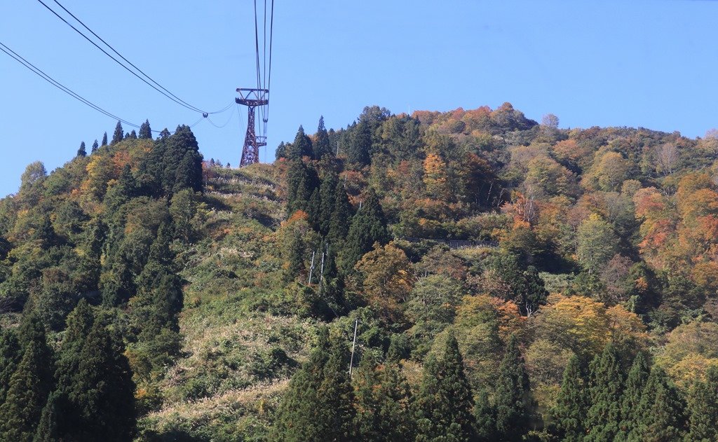ロープウエイの鉄塔が見えています。下の方はまだ紅葉してませんが山頂近くの左上は赤くなっています。