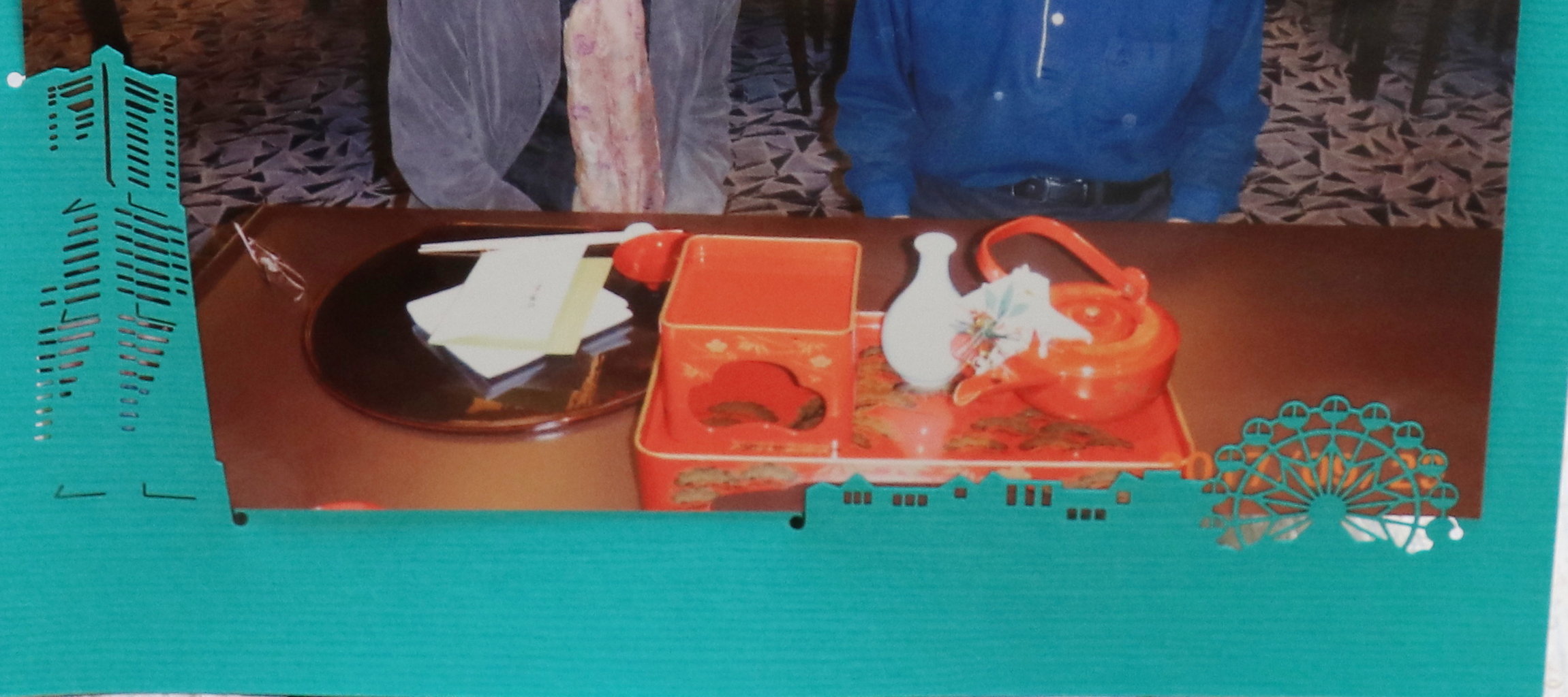 記念写真を撮影してくれ、帰りにランドマークタワーとコスモワールド(観覧車)の切り絵がある写真立てに写真を入れて渡されました。