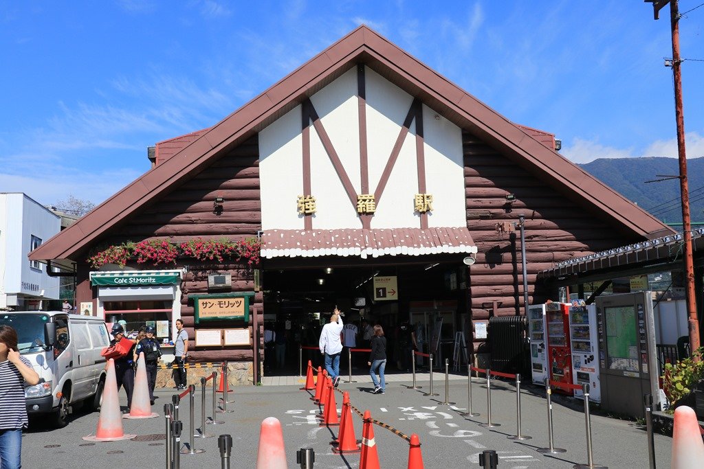 関東の駅百選に選ばれているスイスの山小屋風駅舎で、箱根登山鉄道の駅です。早雲山へのケーブルカーもこの駅舎から出ています。