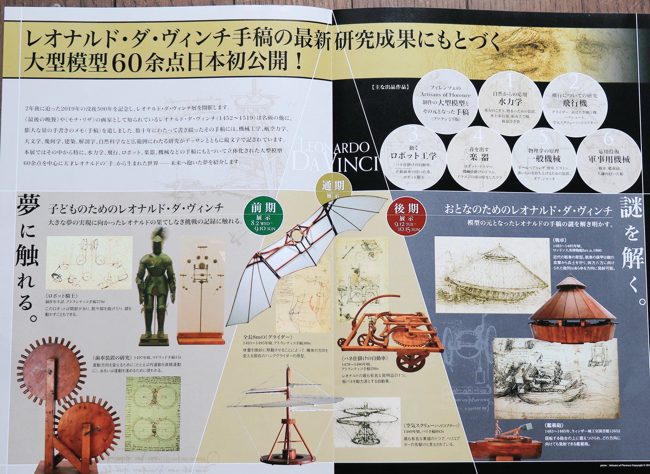 今でいう水力学、ロボット工学、航空学、軍事用機械と多岐にわたる領域の技術を使って具現化した頭脳に脱帽です。機械設計技術者のダヴィンチを感じてきました。ダヴィンチの考え方が今も使われているのに感心しました。ダヴィンチは詳しい説明書と繊細な図面を残したので、模型の再現が出来たのです。