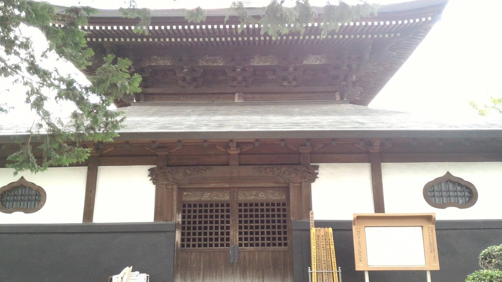 屋根は美しい反りの薬師堂で室町末期に建立され、東京都重要文化財に指定されています。八王子城攻めの上杉軍がここで炊事をした為、堂内の梁に焦げた跡があるそうです。