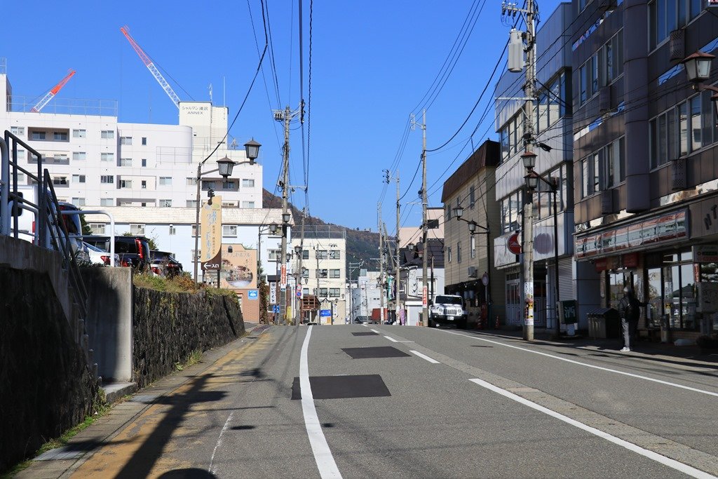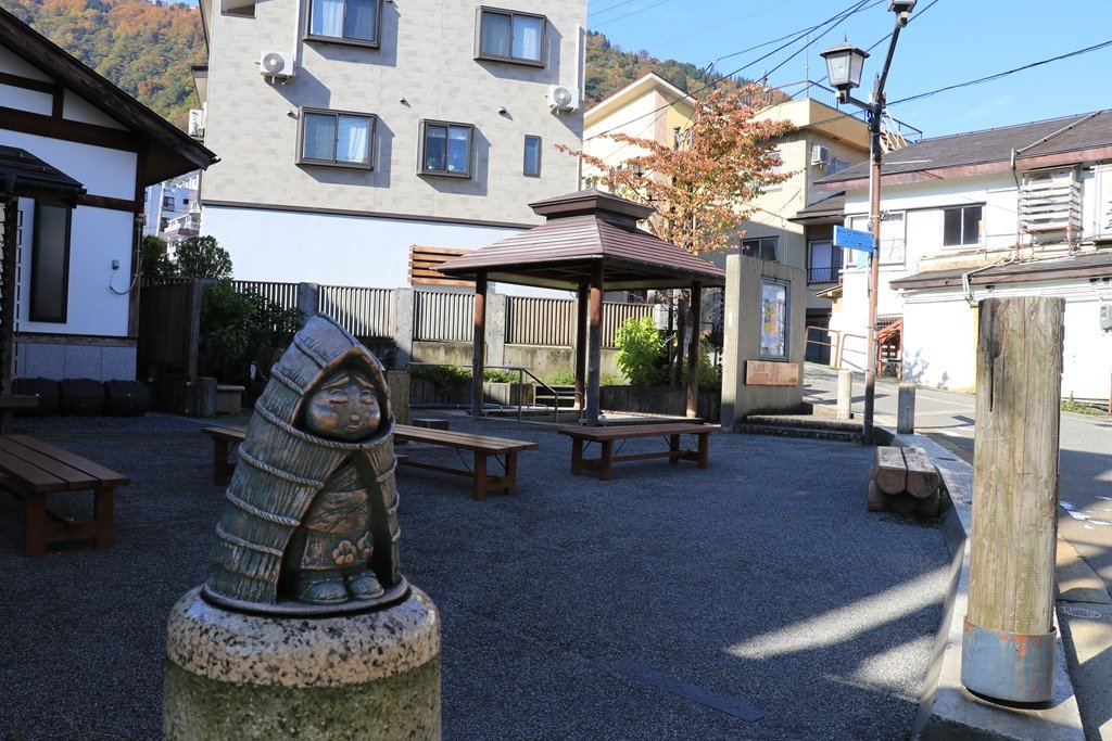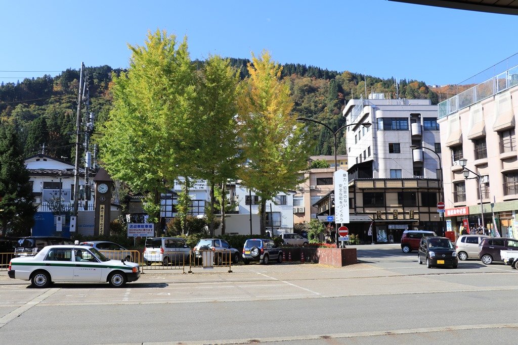 湯沢高原へのロープウエイ乗り場まで温泉街を眺めながら、僅かな傾斜の上り下り上りを15分ほど歩きました。