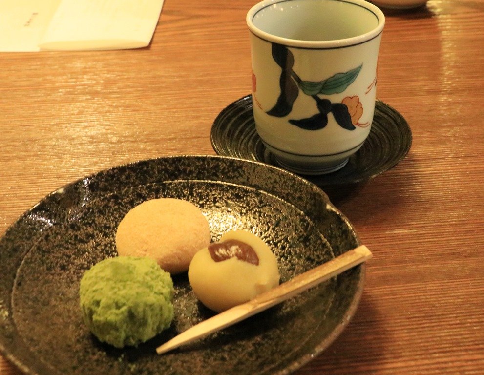 凌ぎとは定まった食事時間の他に出される軽食のことで、空腹を凌ぐ(しのぐ)という意味です。