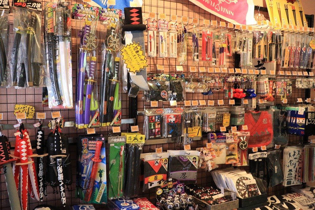 忍者グッズが沢山並んでいます。子供・外国人目当てに最近出来たようです。