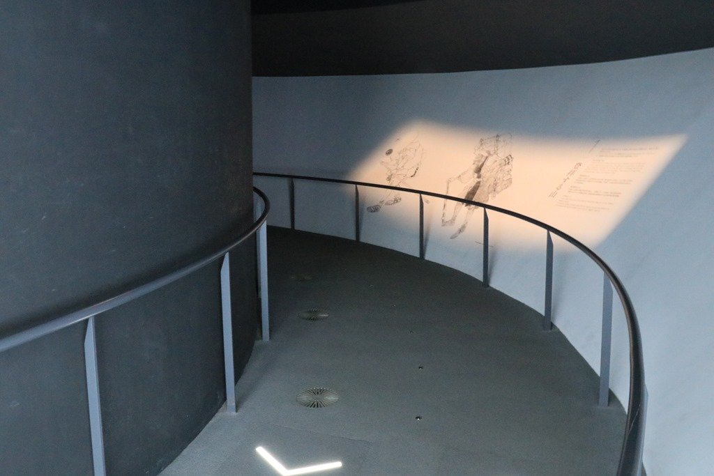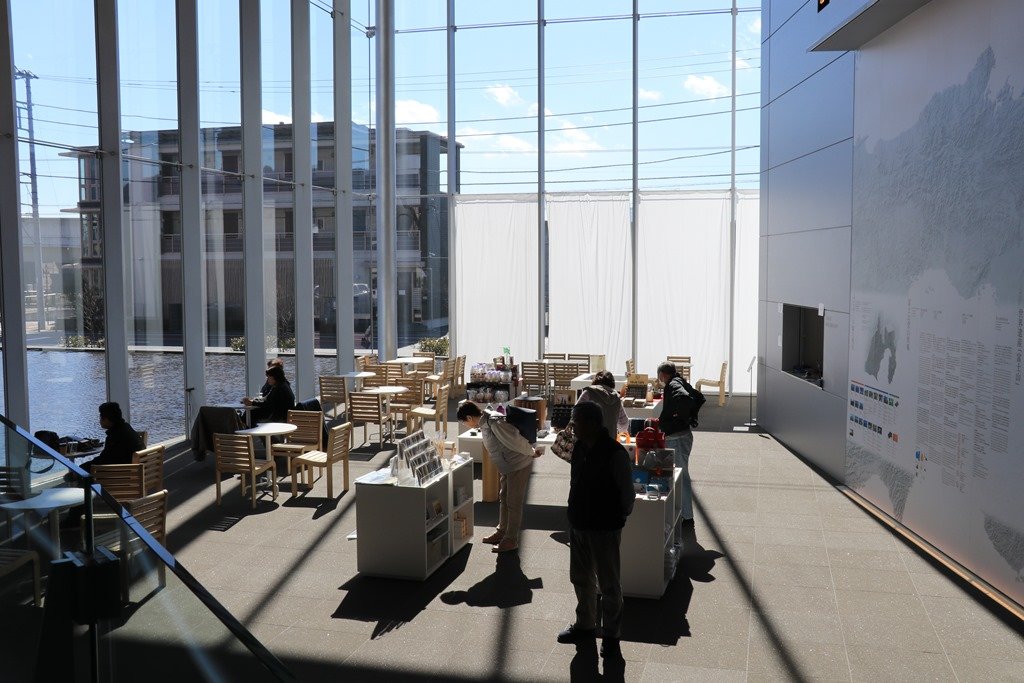 チケットを購入し、三角錐に入りました。Cafe&Shopが見えています。