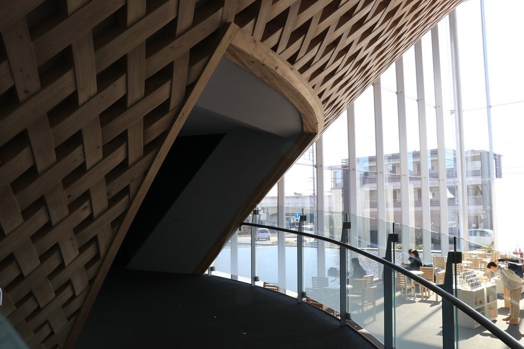 この中に螺旋スロープが作られ、スロープを登りながら富士山からの景色を楽しめるようになっていました。逆三角形の周囲はガラス張りで受付やCAFE&SHOPを配置しています。