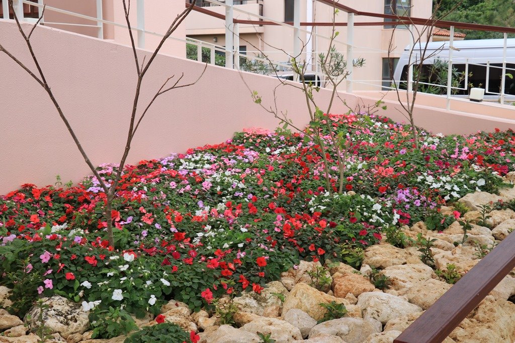 屋上ホール先端部は富士山噴火で出来た溶岩が敷き詰められていました。