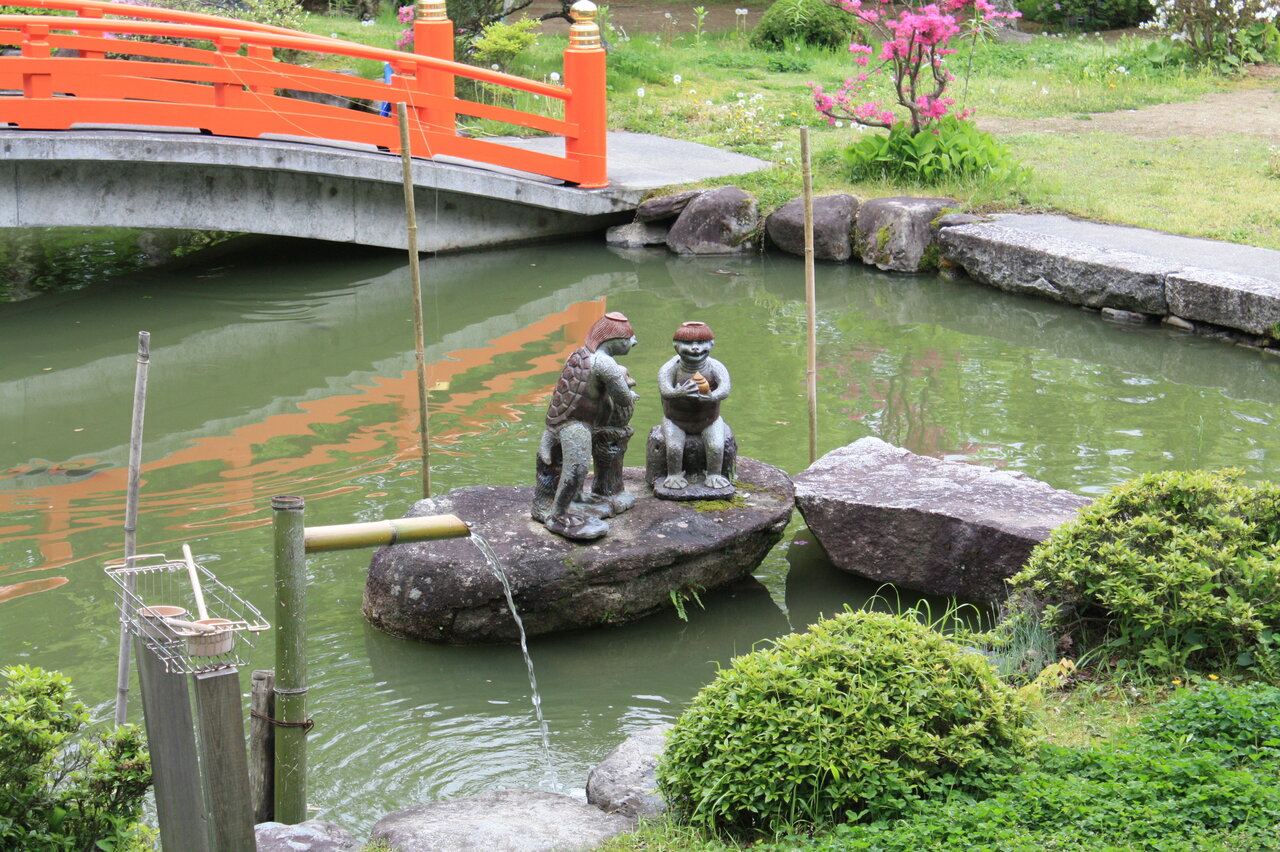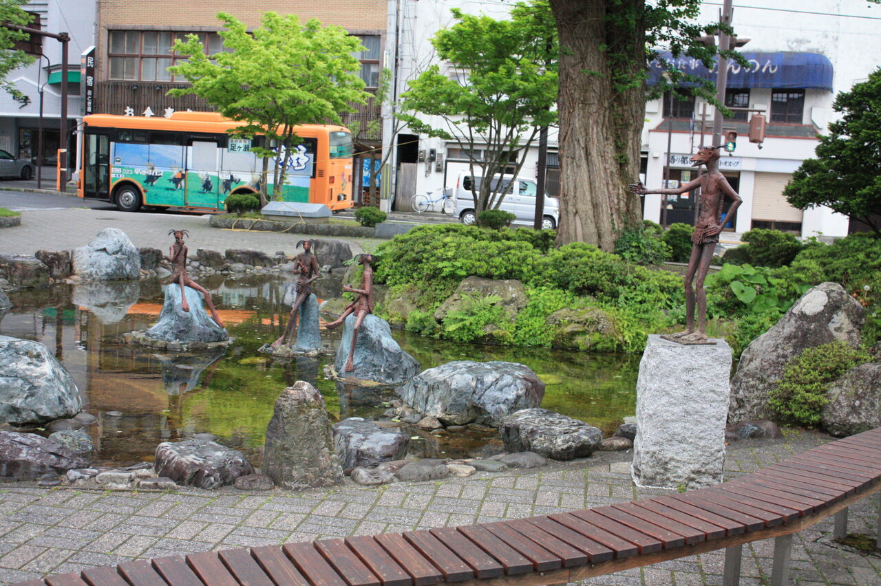 駅前の池にはカッパがいました。スマートなカッパばかりです。