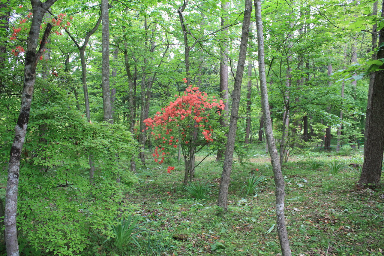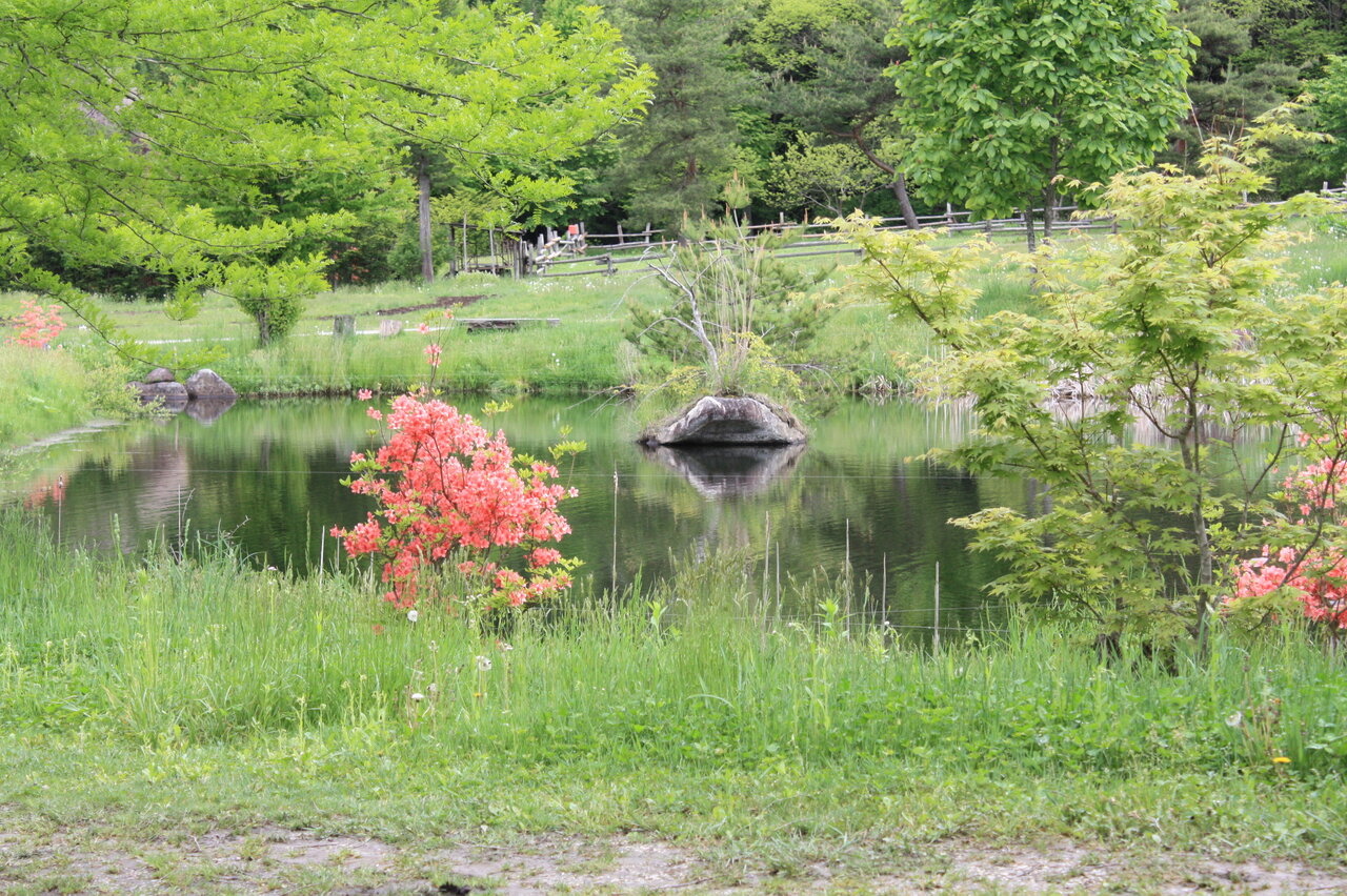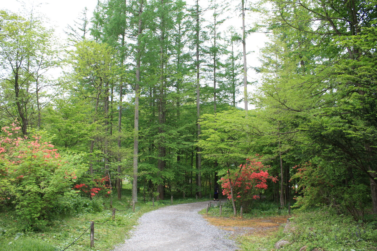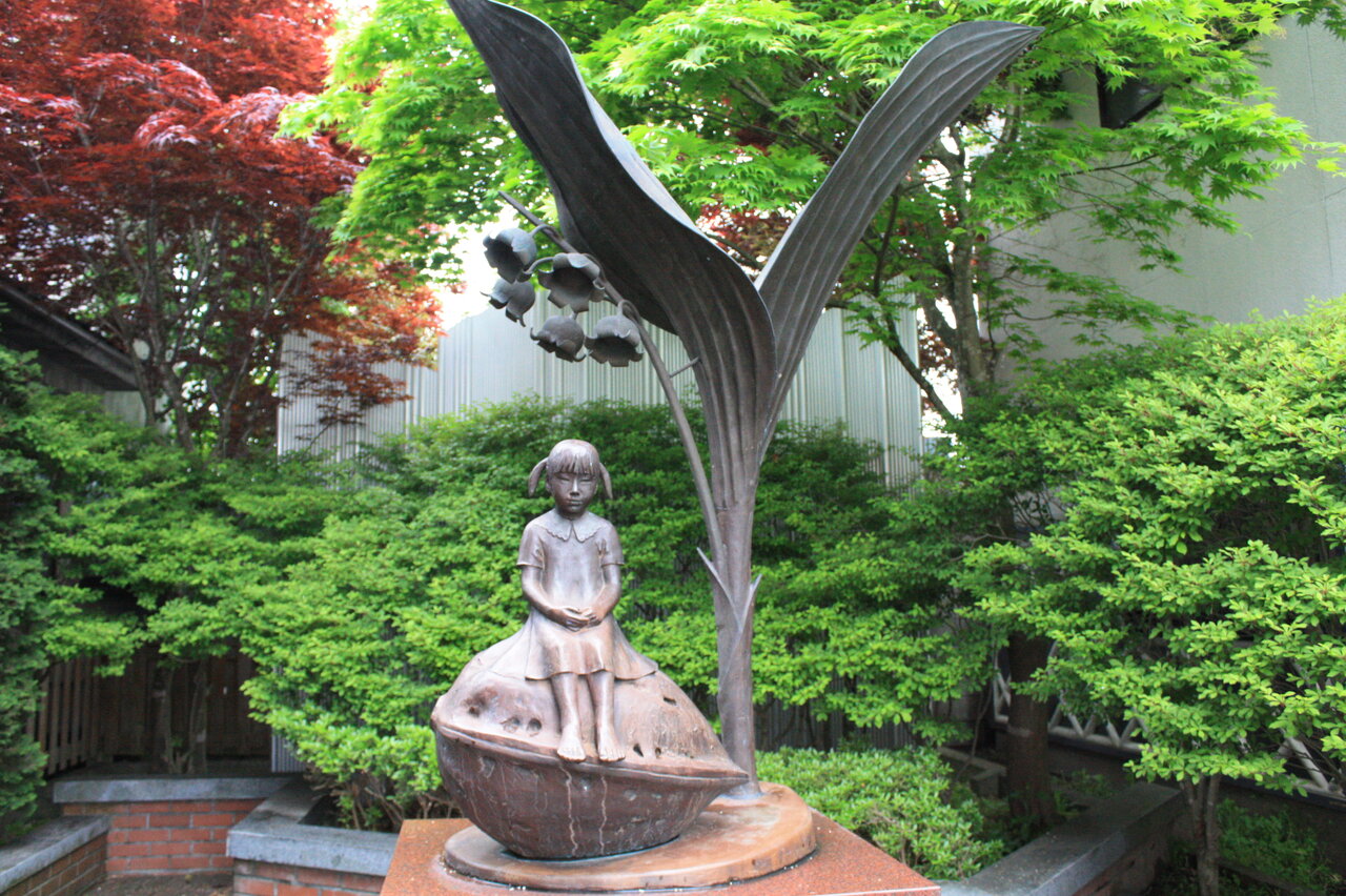 博物館へ行く途中スズランが咲いており、少女の像がありました。
