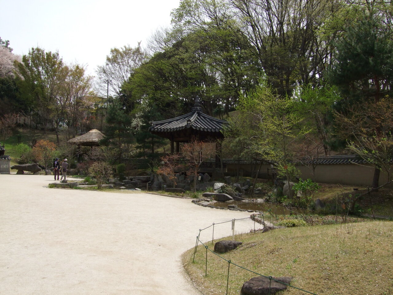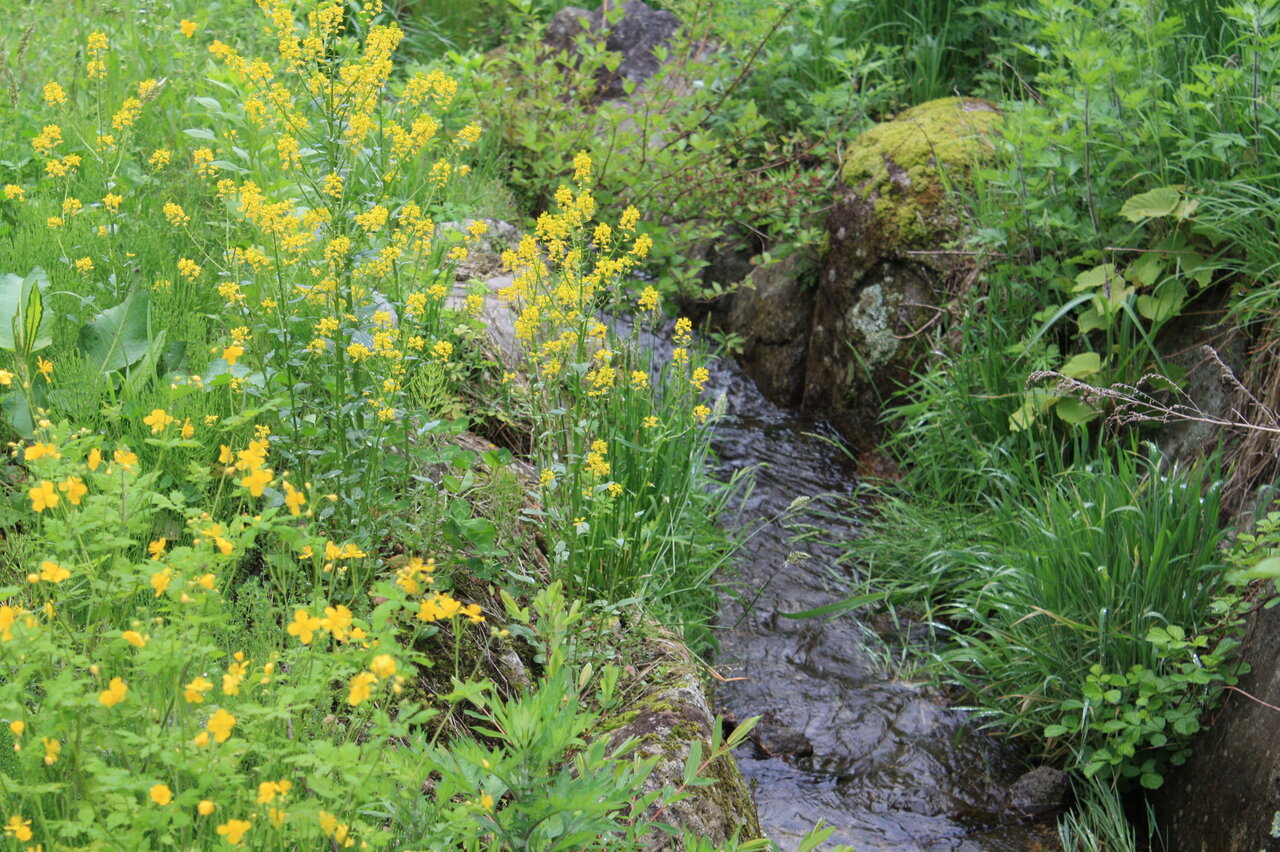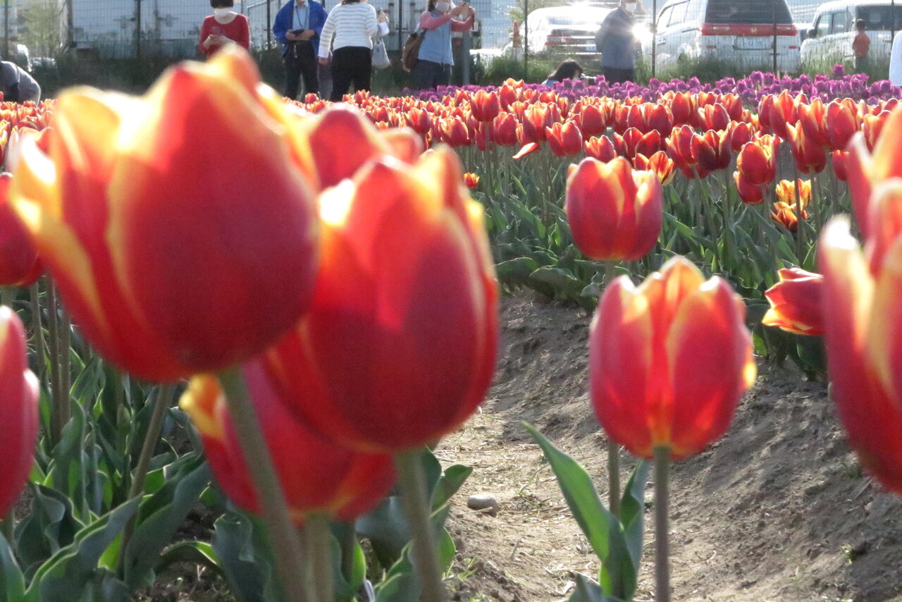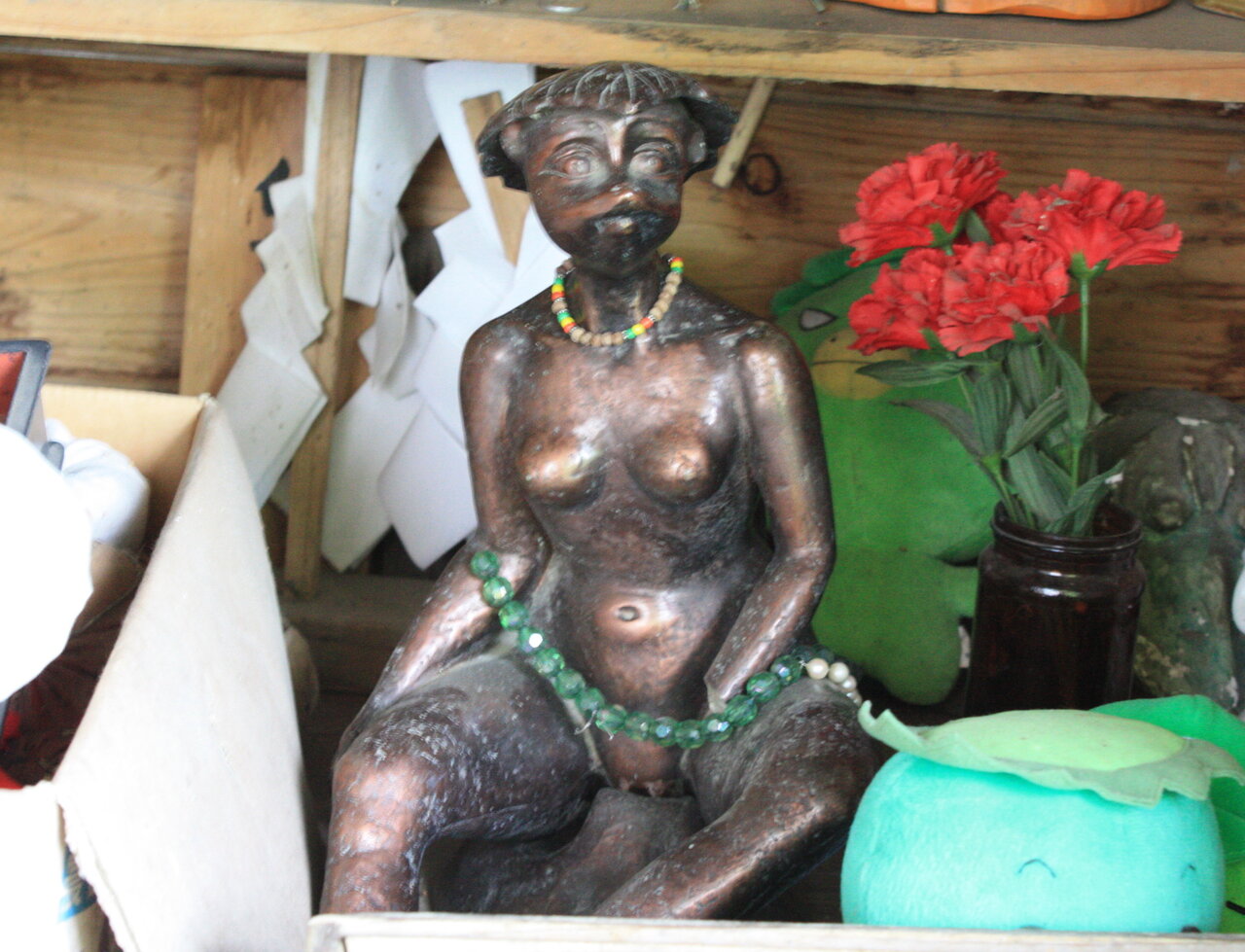 博物館へ行く途中スズランが咲いており、少女の像がありました。