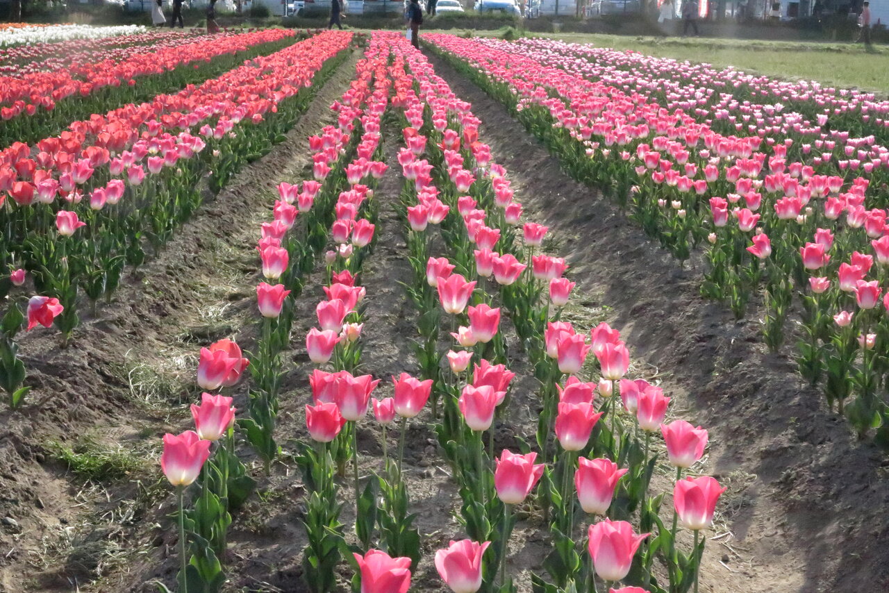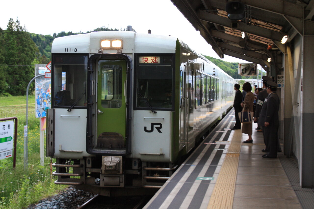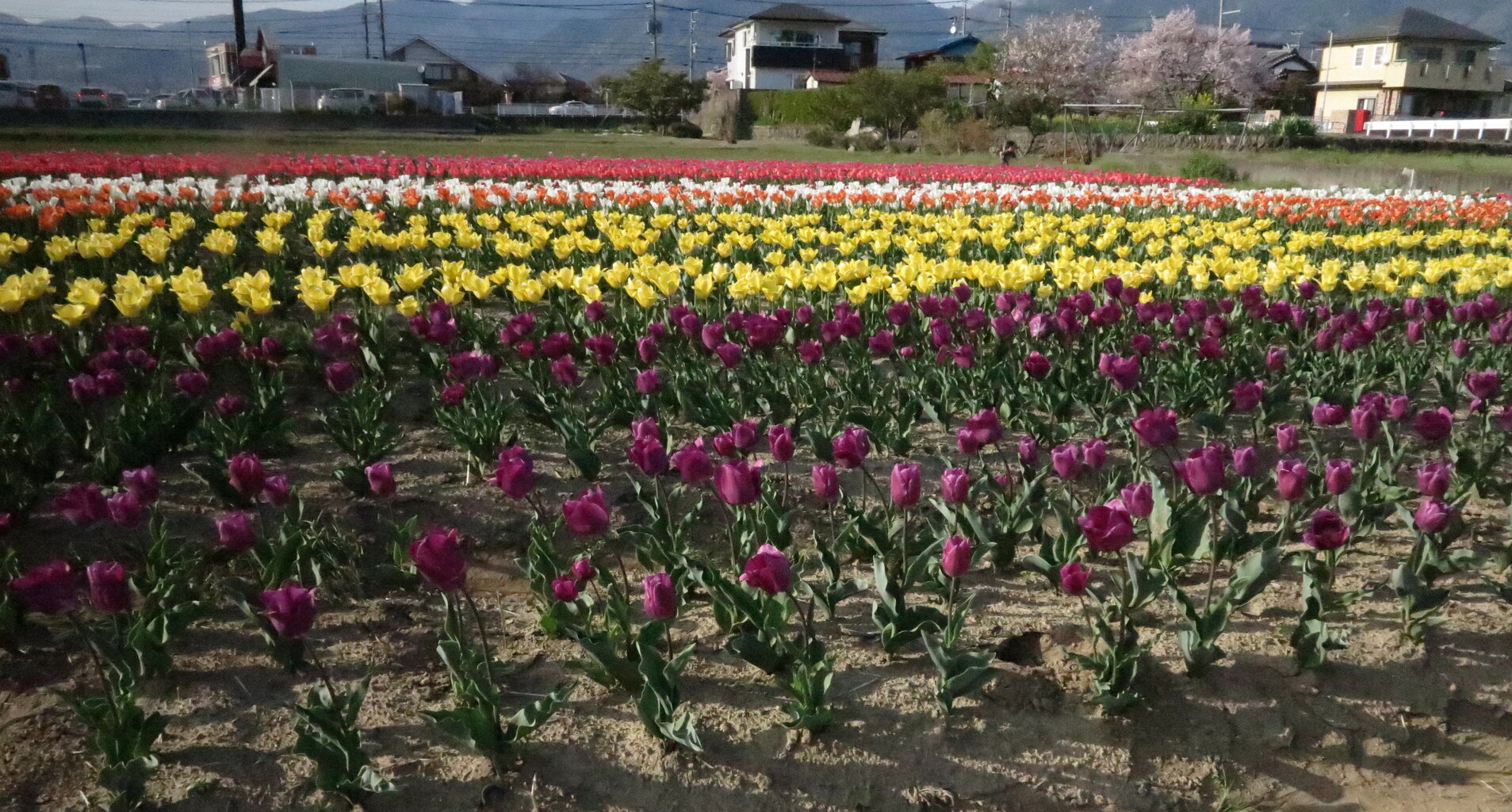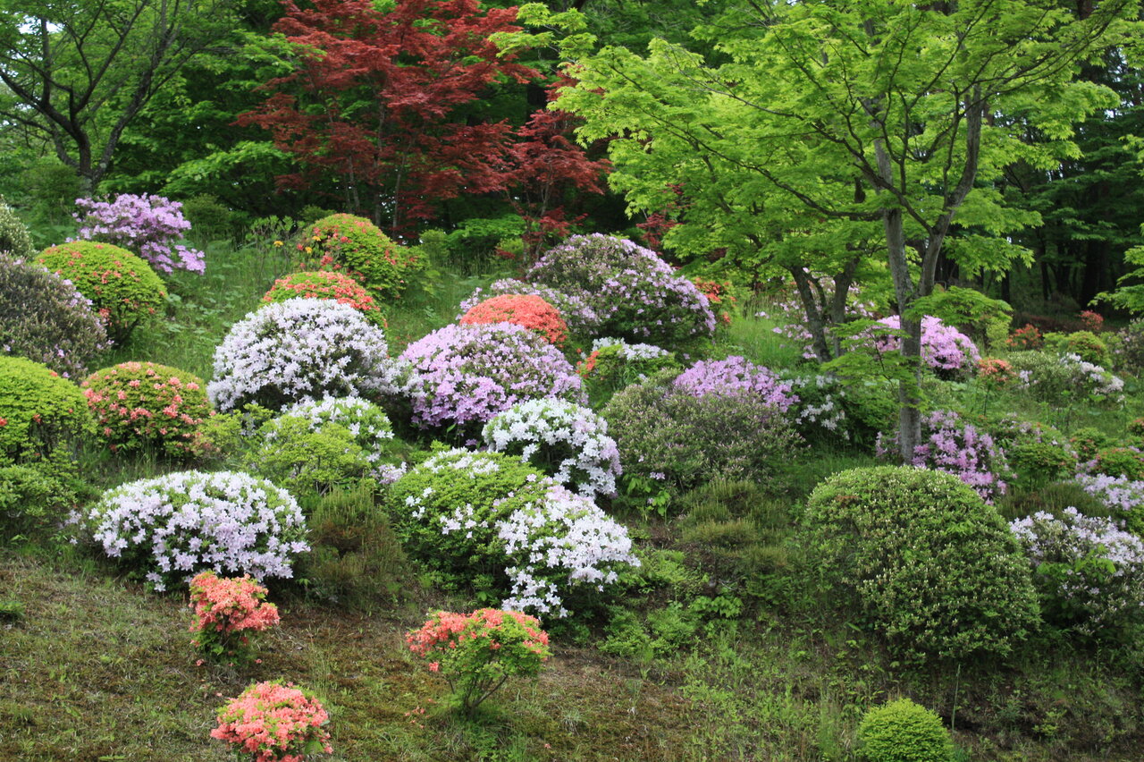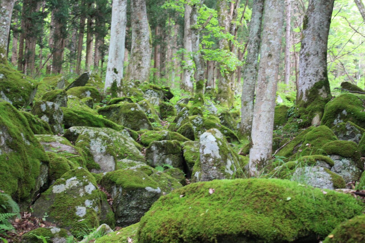 遠野は四方を山に囲まれた盆地です。遠野の街は昔、湖だった所に出来たと伝えられています。正面向こうの一番高い山が早池峰山(はやちねさん)(1917m)、右に六角牛山(ろっこうしさん)( 1294m )、左に石上山(いしがみさん)( 1038m )と1000m級の山が連なっています。これらは遠野三山と呼ばれています。