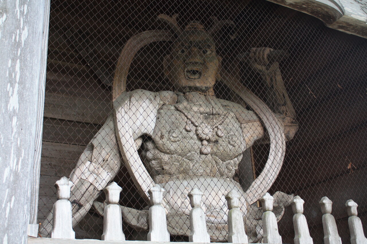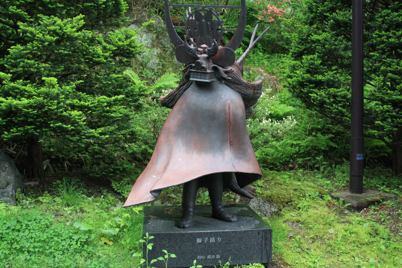 博物館の横にある「獅子おどり」の銅像です。遠野で豊作や祝い事があった時に踊っていたようです。今は祭りのときに踊られます。宮城県・岩手県では「獅子」ではなく「鹿(シシ)」のことだということで鹿の角がついています。