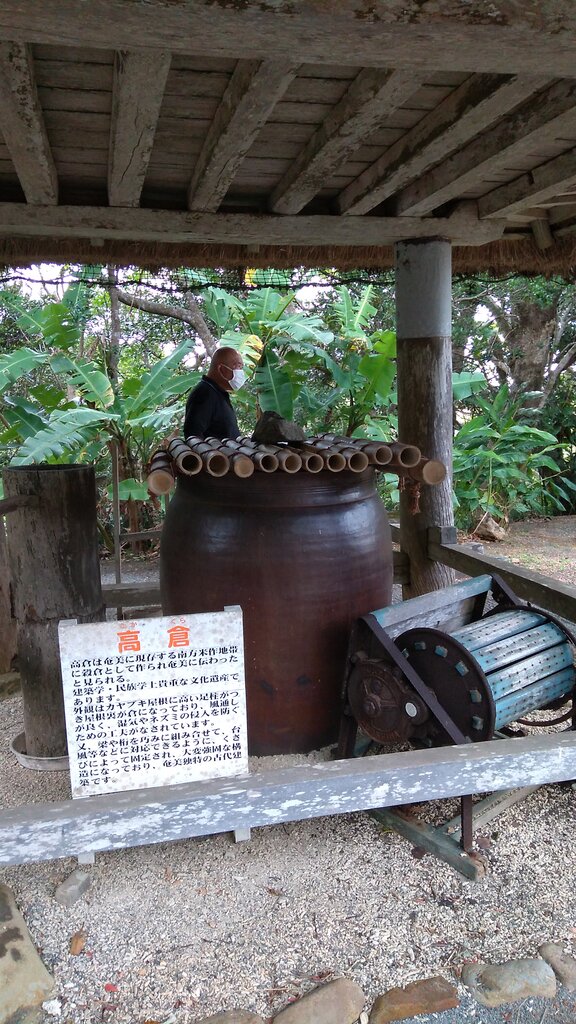 湿気やネズミの被害から穀物を守るための高床式倉庫、高倉が再現されていました。