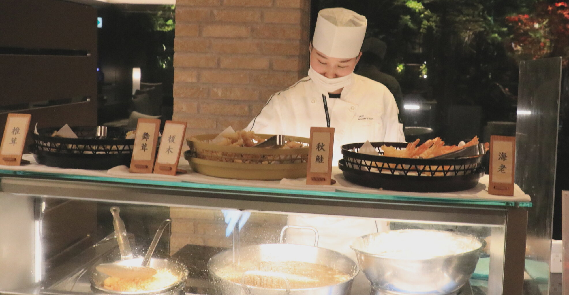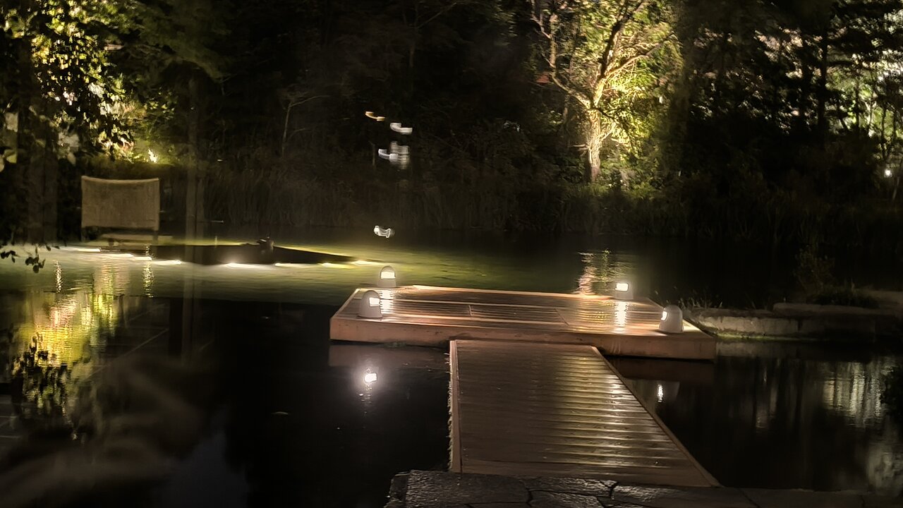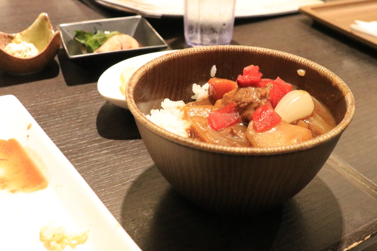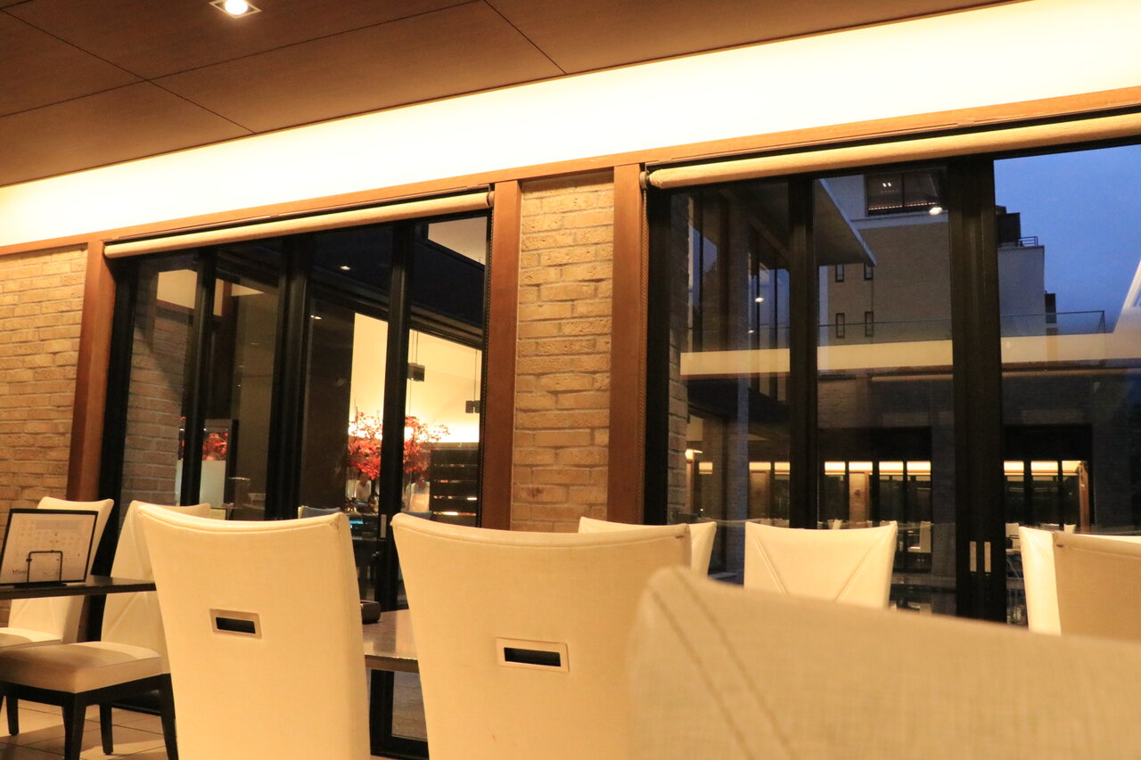 食事を終えた頃、池に対のカモが来て、潜っては餌を取るかわいい姿を見ることができました。カモはホテルで飼っているのではなく何処からか飛んでくるとのことでした。