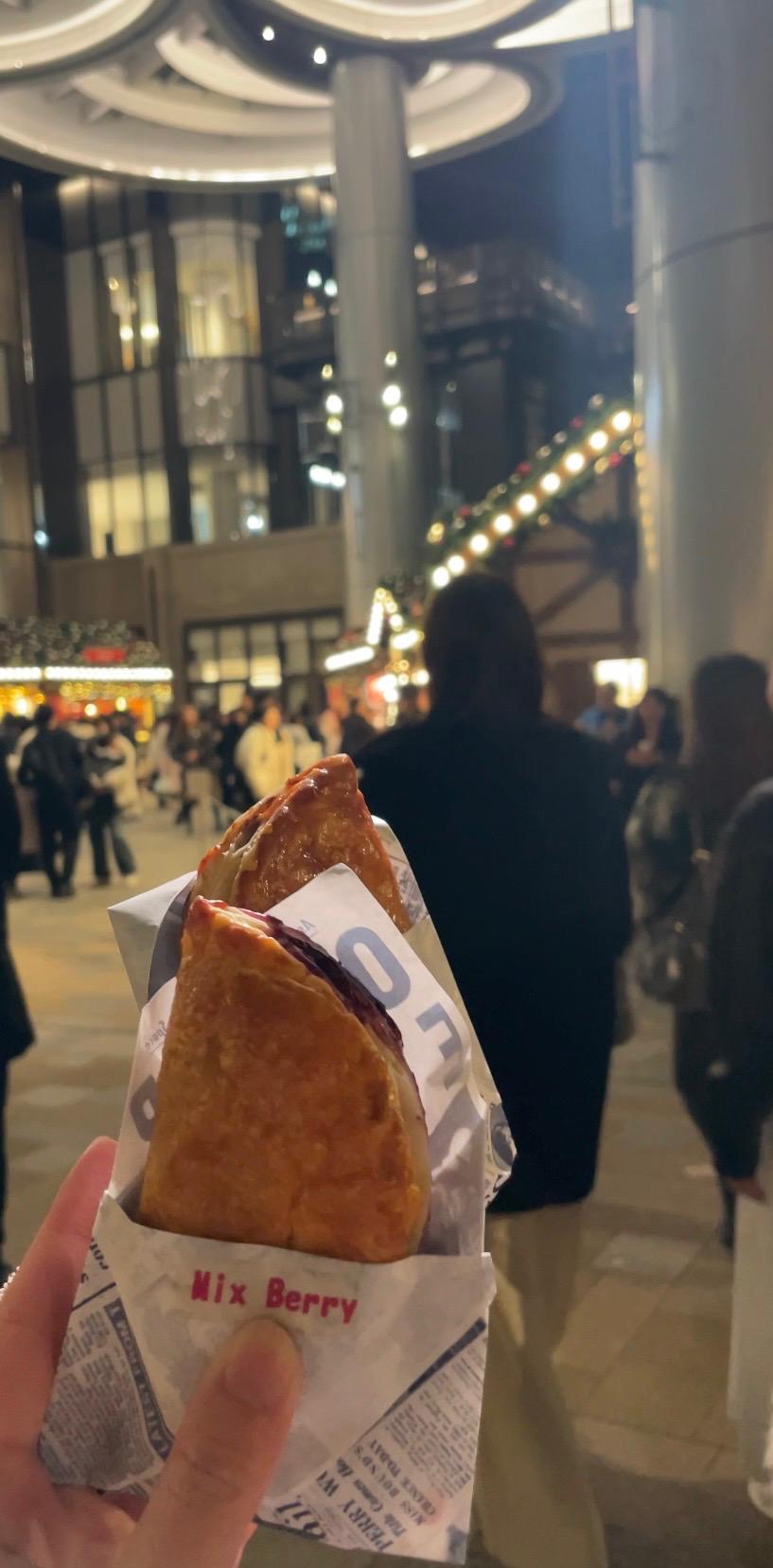 パイのお店でミートパイとベリーパイを買いました。