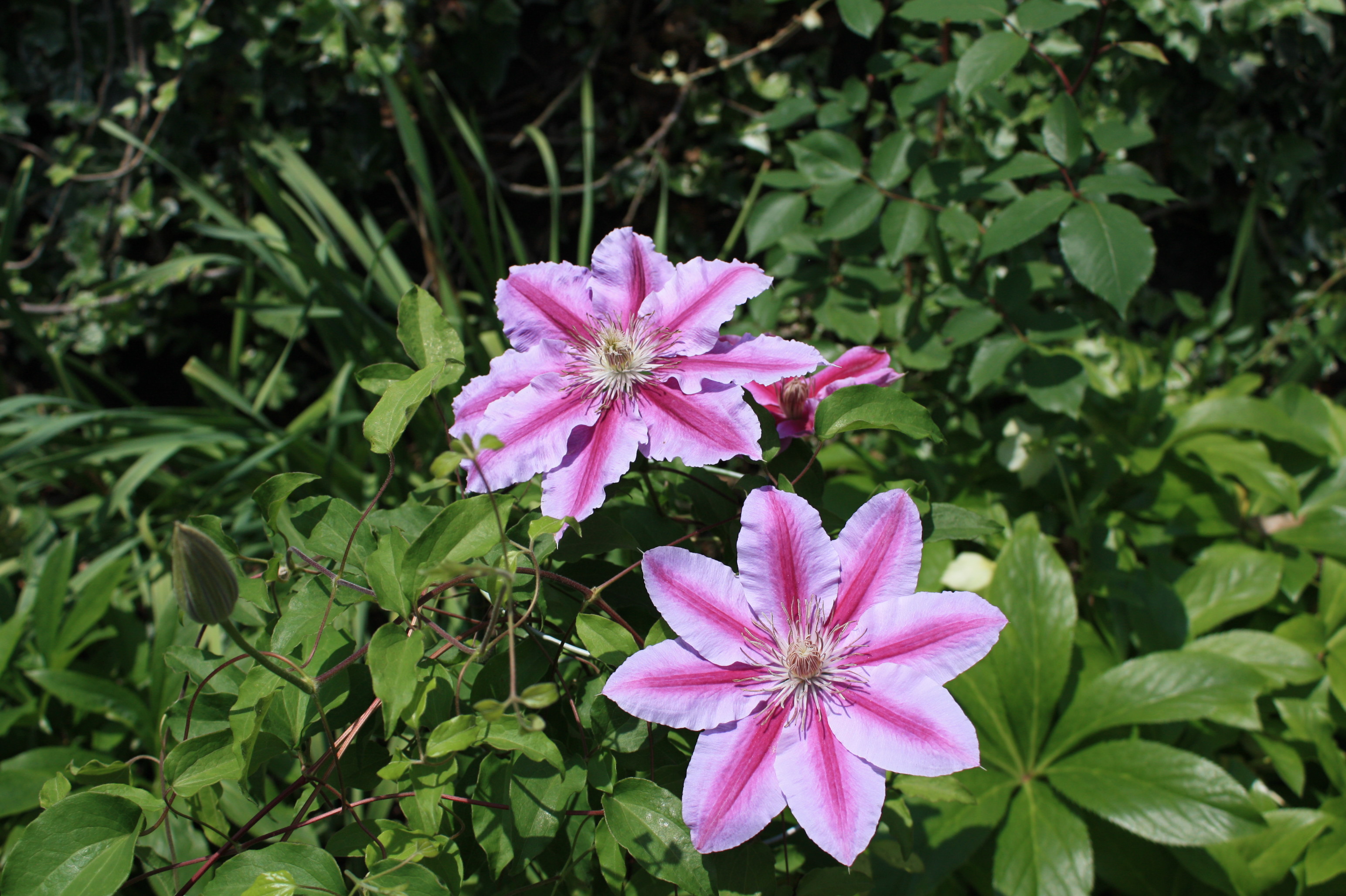 そのほか、3年間花を咲かせてくれない、ベルタイプのクレマチスがあります。暑さに弱く、すぐ葉がなくなります。昨年から日陰に置きっぱなしです。今年は葉を茂らせているので咲くかも知れません。ひょっとしたら日照不足で咲かないかもしれません。