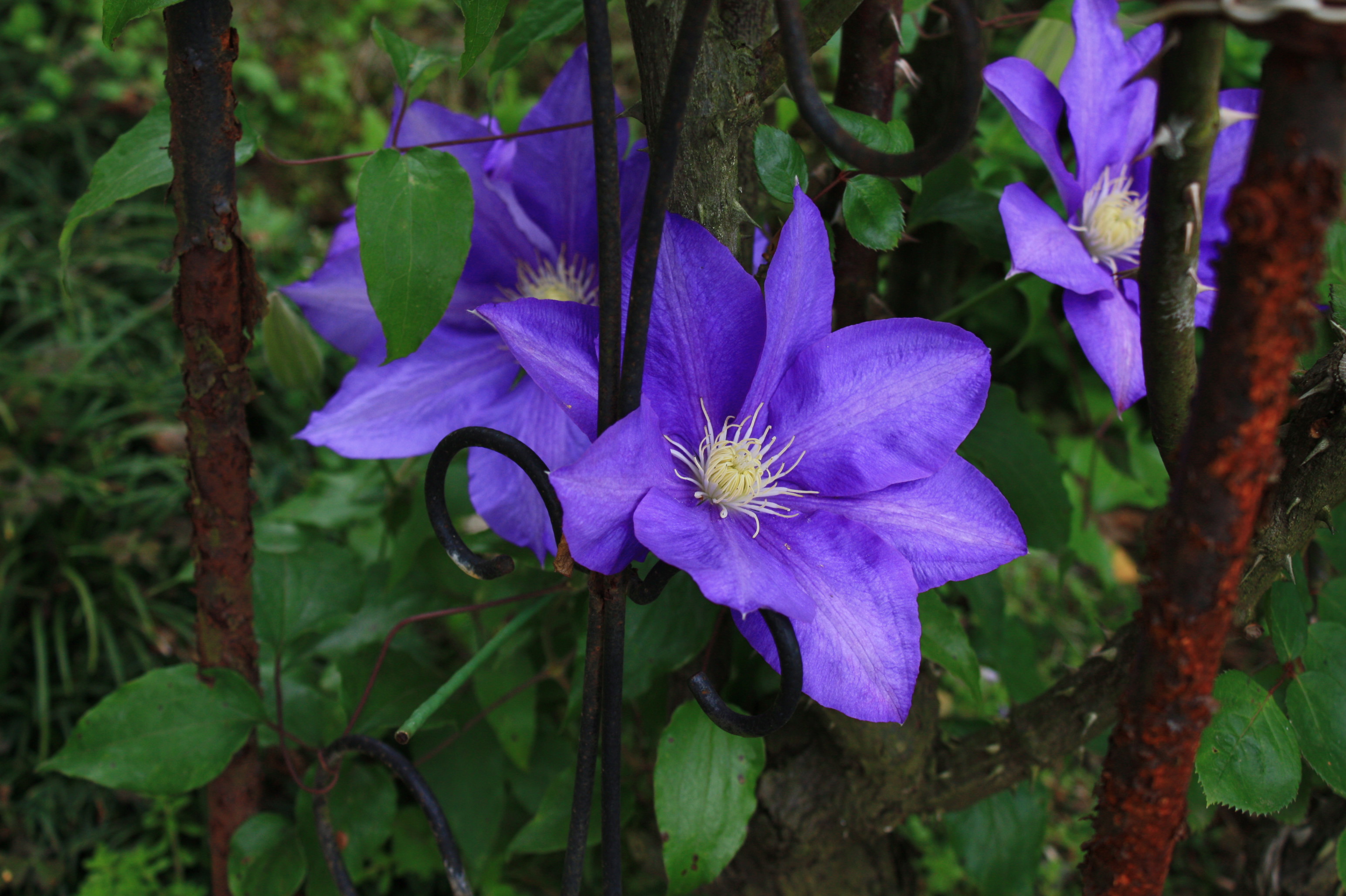 クレマチスの定番の色です。実家から挿し木苗を貰ってきて30年間ほど咲かせてくれている種類です。