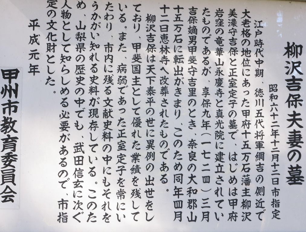 柳沢吉保夫婦の墓です。柳沢吉保は江戸時代、徳川綱吉の側用人として幕府の改革に尽くした人物です。