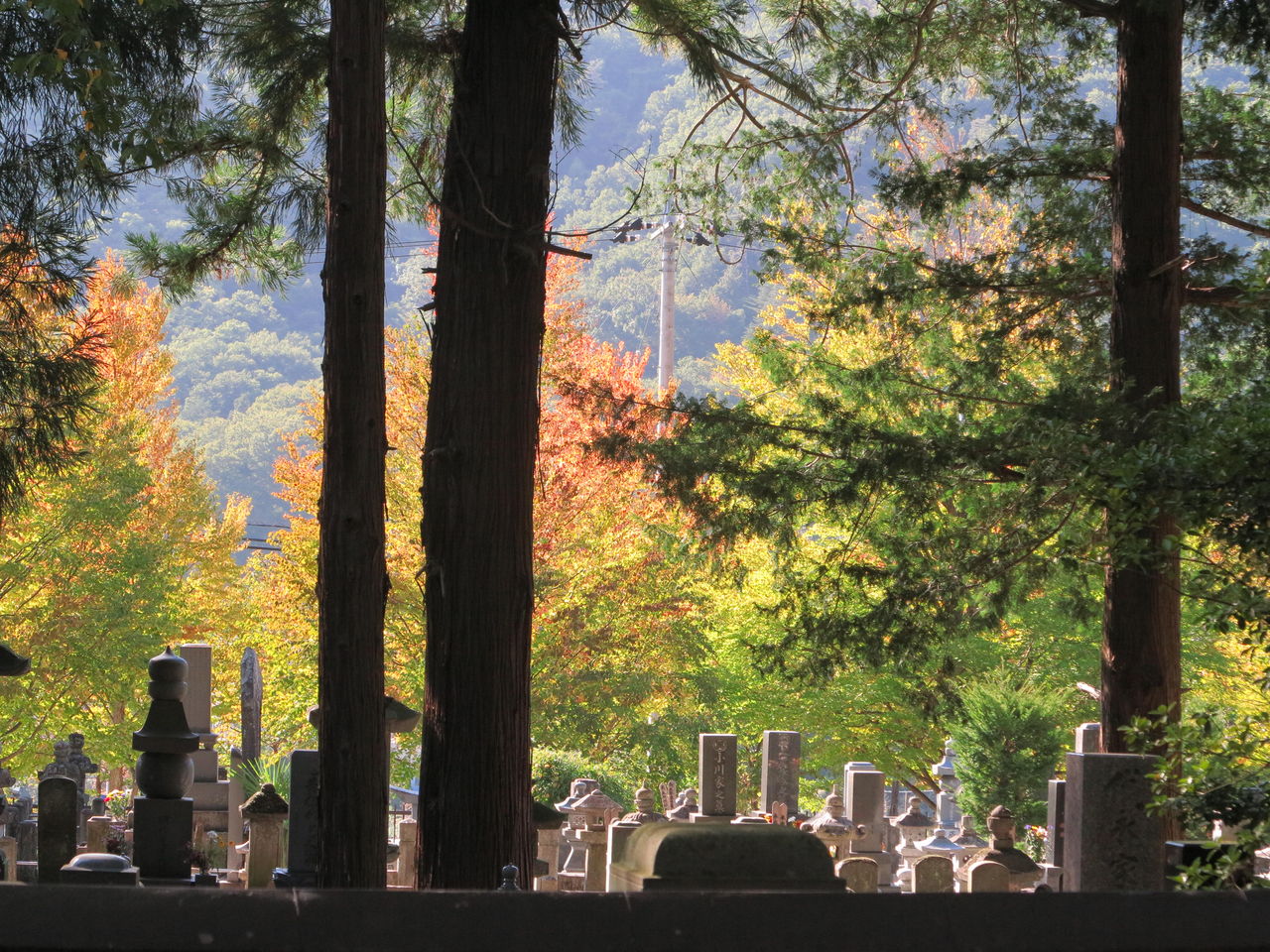 武田家臣約70基の供養塔の周りの木々は美しく色づいていました。
