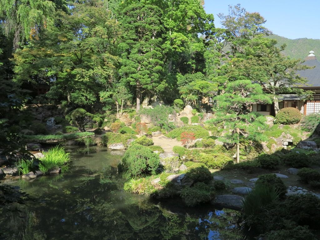 国指定の名勝庭園。上段には枯山水、下段には心字池を配した回遊式庭園です。