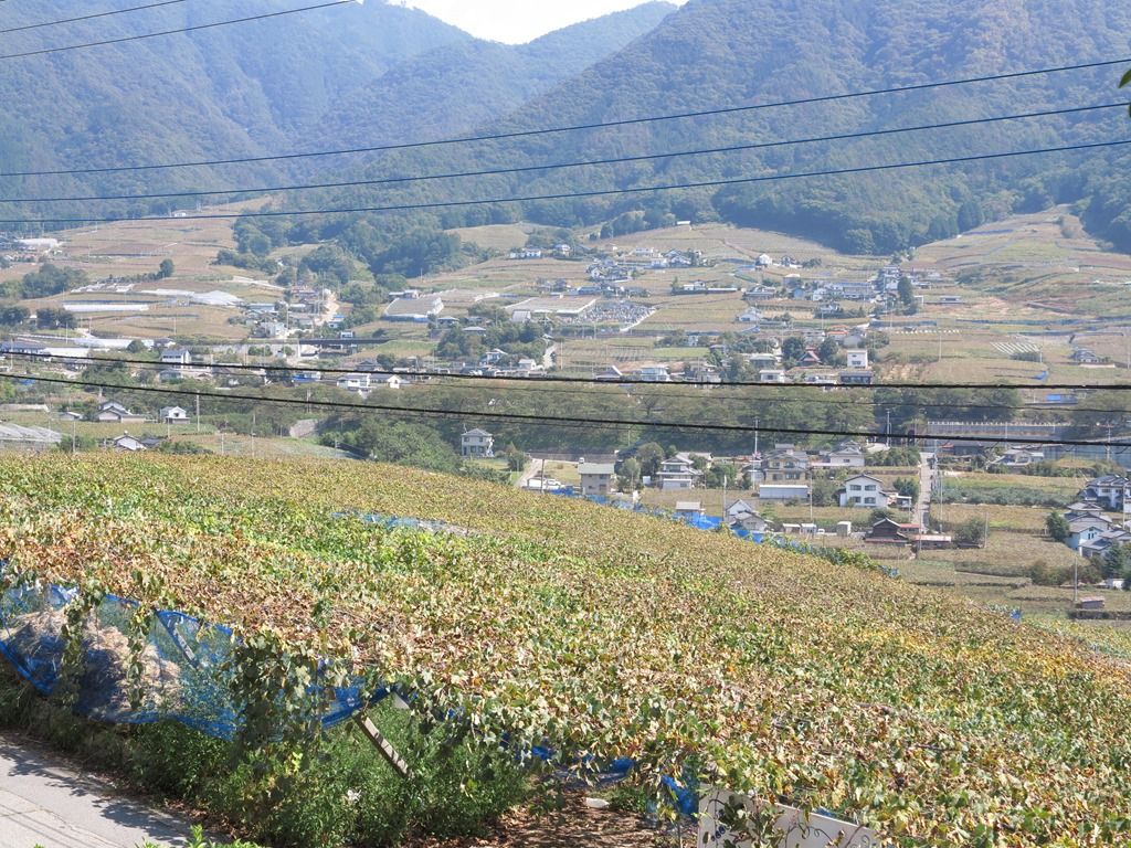 「田んぼ」のように見える景色は「ぶどう棚」なのです。