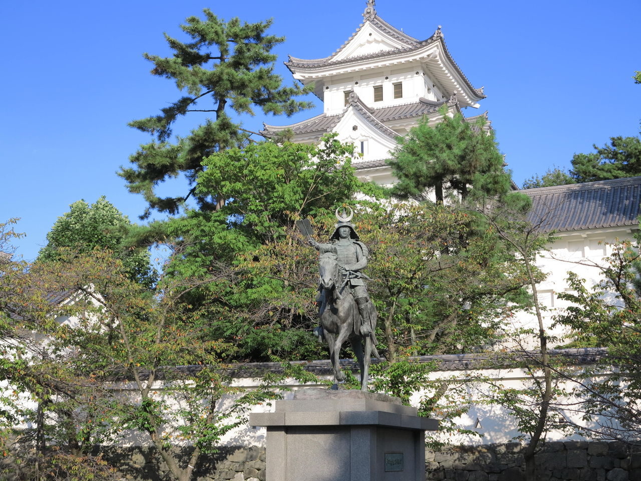 戸田氏鉄(うじかね)公騎馬像。大垣城は関ヶ原の戦い後の寛永12年(1635年)から戸田氏鉄が藩主を努め、明治の廃藩置県まで235年戸田氏が君臨したのです。