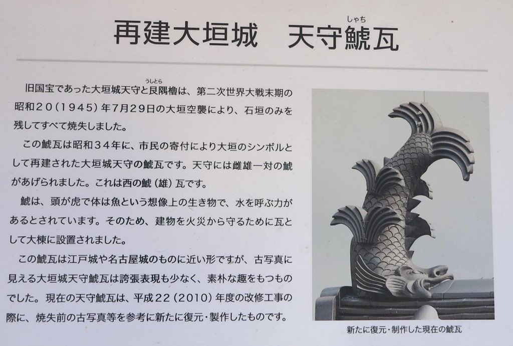 天守閣は太平洋戦争の空襲で焼けてしましいました。この鯱は、その後、復元されたものです。