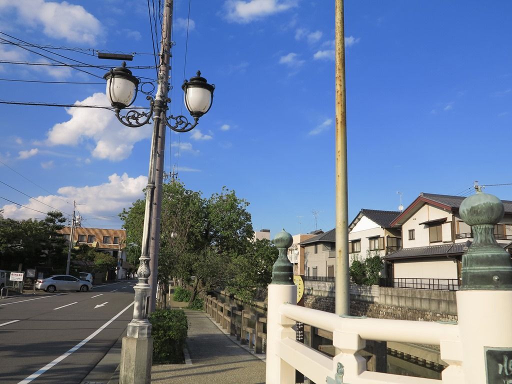 外堀に沿って駅まで歩きました。欄干に擬宝珠がついている橋です。