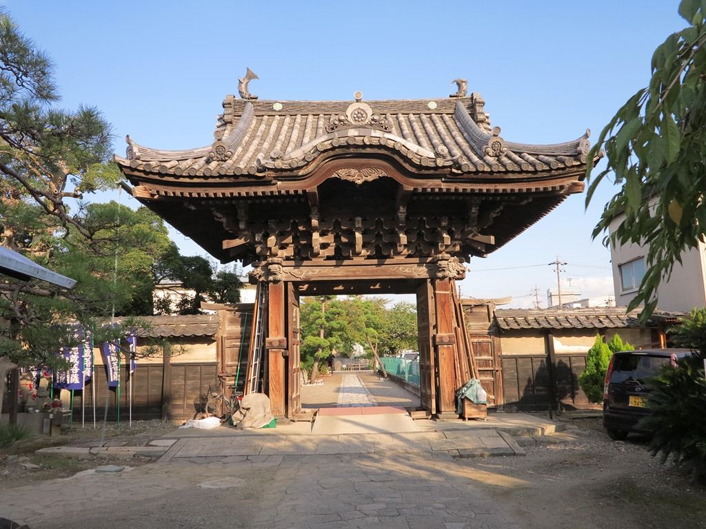 本堂は昭和20年の空襲で焼失しましたが、山門は延焼を免れ、天保年間(1830-1844年)に再建されたものです。