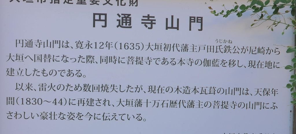 円通寺は、初代大垣藩主戸田氏鉄公が大垣へ国替えになった寛永12年(1635年)に、尼崎から伽藍などを移し建立されました。