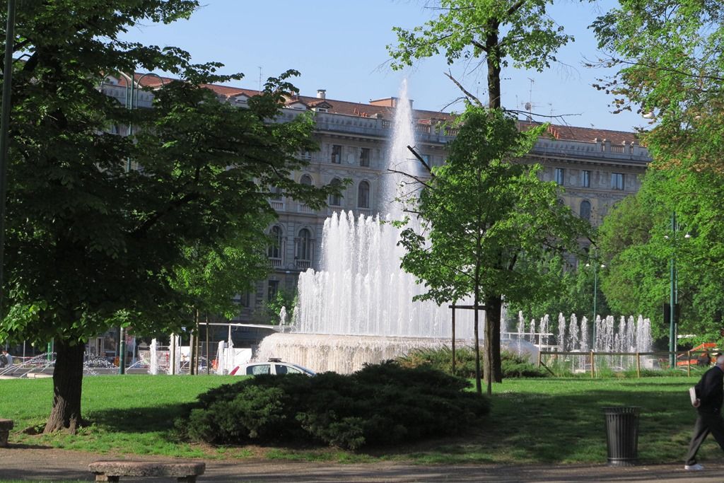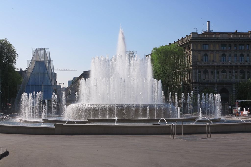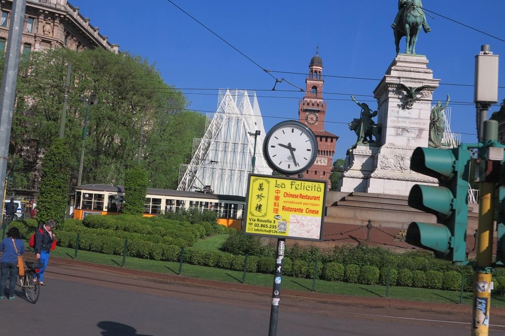 三角形の建物は5月1日から開催されるミラノ万博の会場です。この建物は周囲の雰囲気を壊していると不評とのことです。5月1日が迫っているのに工事が終わっていないと心配されていました。