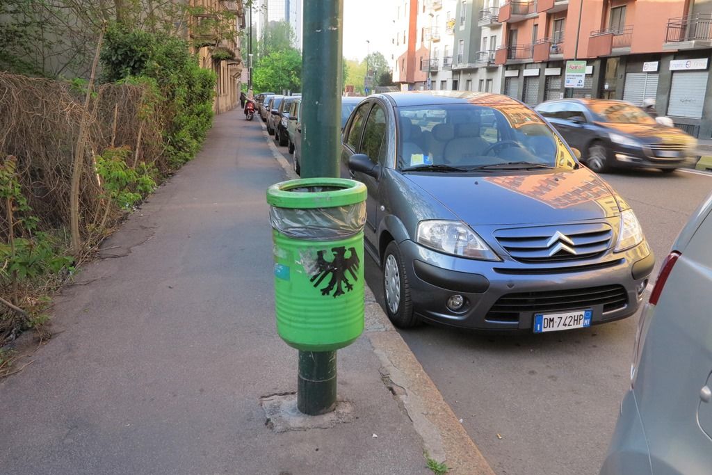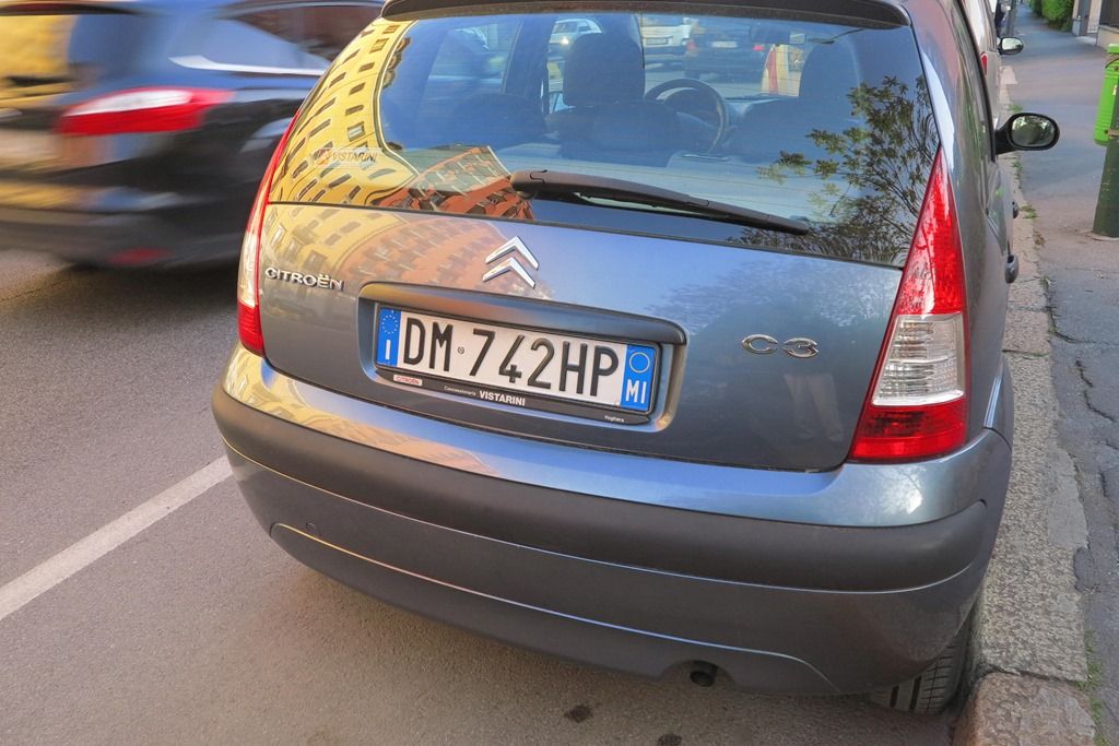 車のナンバープレートには左にEUマーク、右にMI(ミラノ)が記されています。
