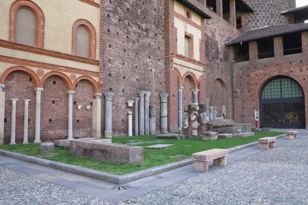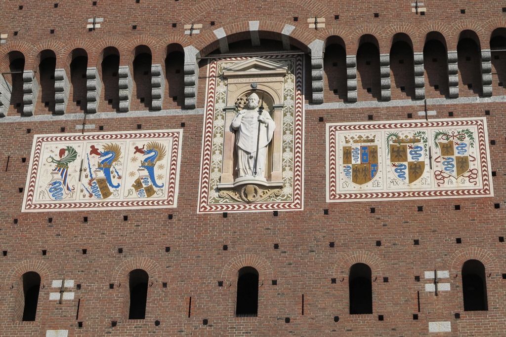 ミラノを支配していたヴィスコンティ家の建てた居城だったが、その後、ミラノの支配者はスフォルツァ家に移り、1450年にミラノ公フランチェスコ・スフォルツァが城を改築しました。