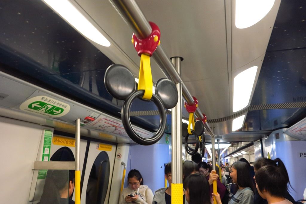 ミッキーの形状の吊り輪です。乗客は結構乗っていました。