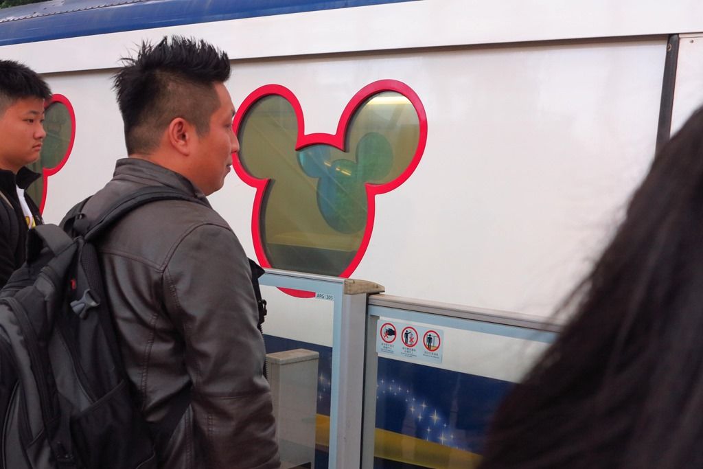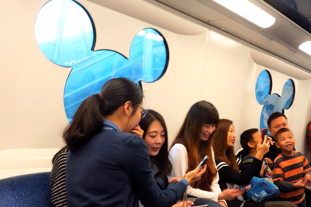 ディズニーランドへは最後にひと駅ディズニーランドリゾート線に乗ります。日本のディズニーランドの周囲を走る電車と同じ感じです。