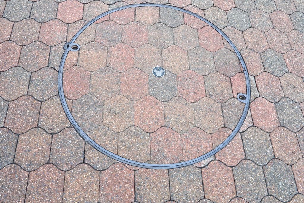 マンホールの蓋は小さなミッキーがついているだけのシンプルなものでした。