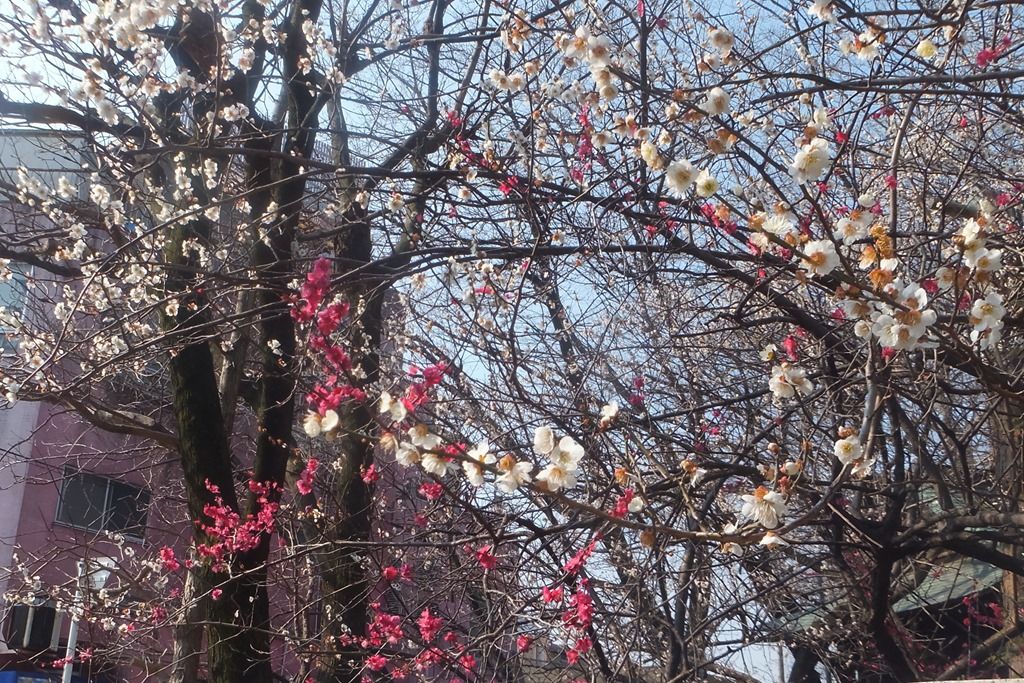 3月上旬だったので菅原道真が愛した梅の花が咲いていました。