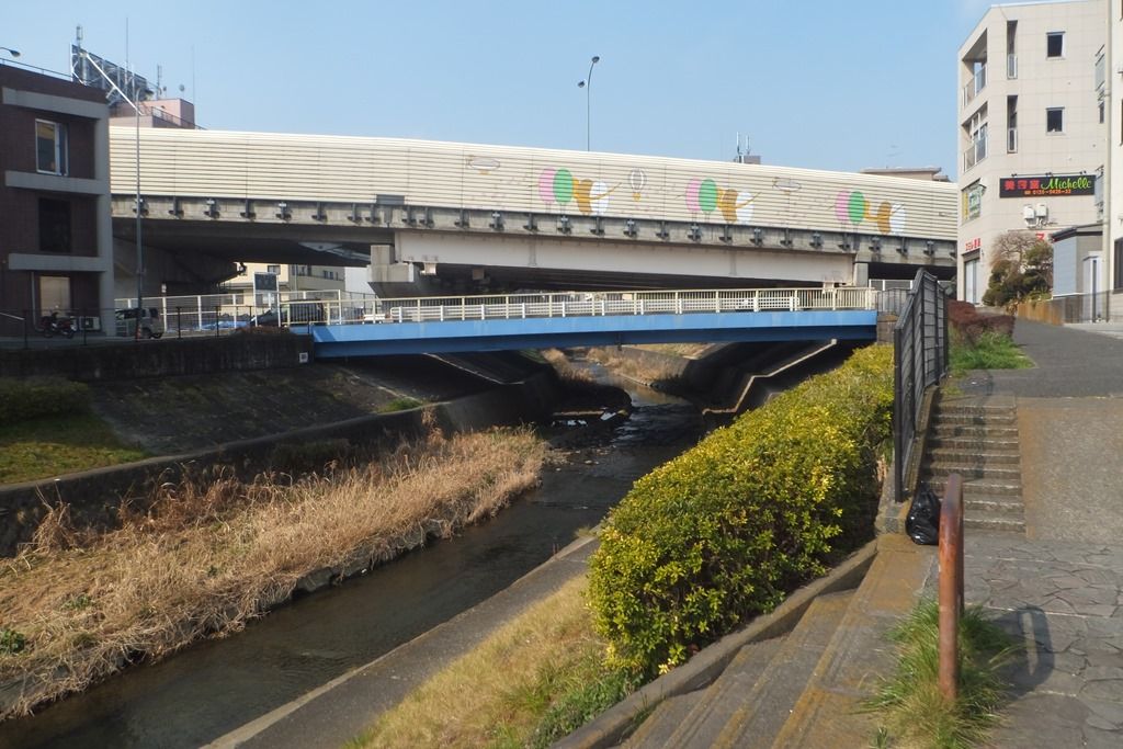 北野駅の裏側は一級河川湯殿川が流れていました。