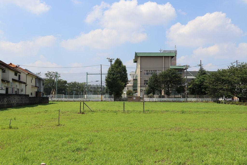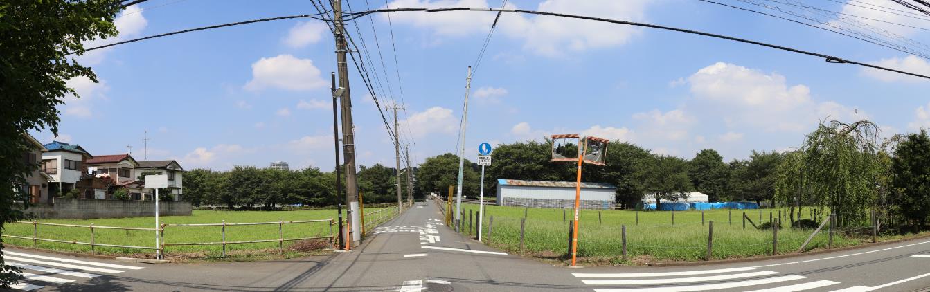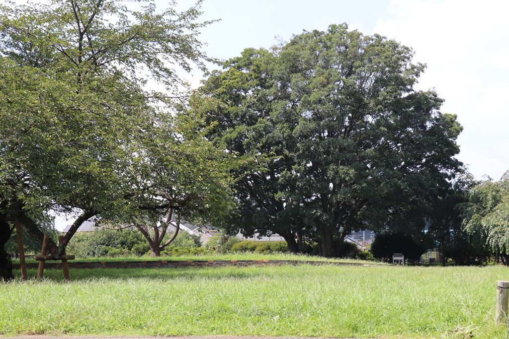 中門辺りに立って国分寺跡境内を眺めた写真です。木々がある場所までが国分寺跡です。