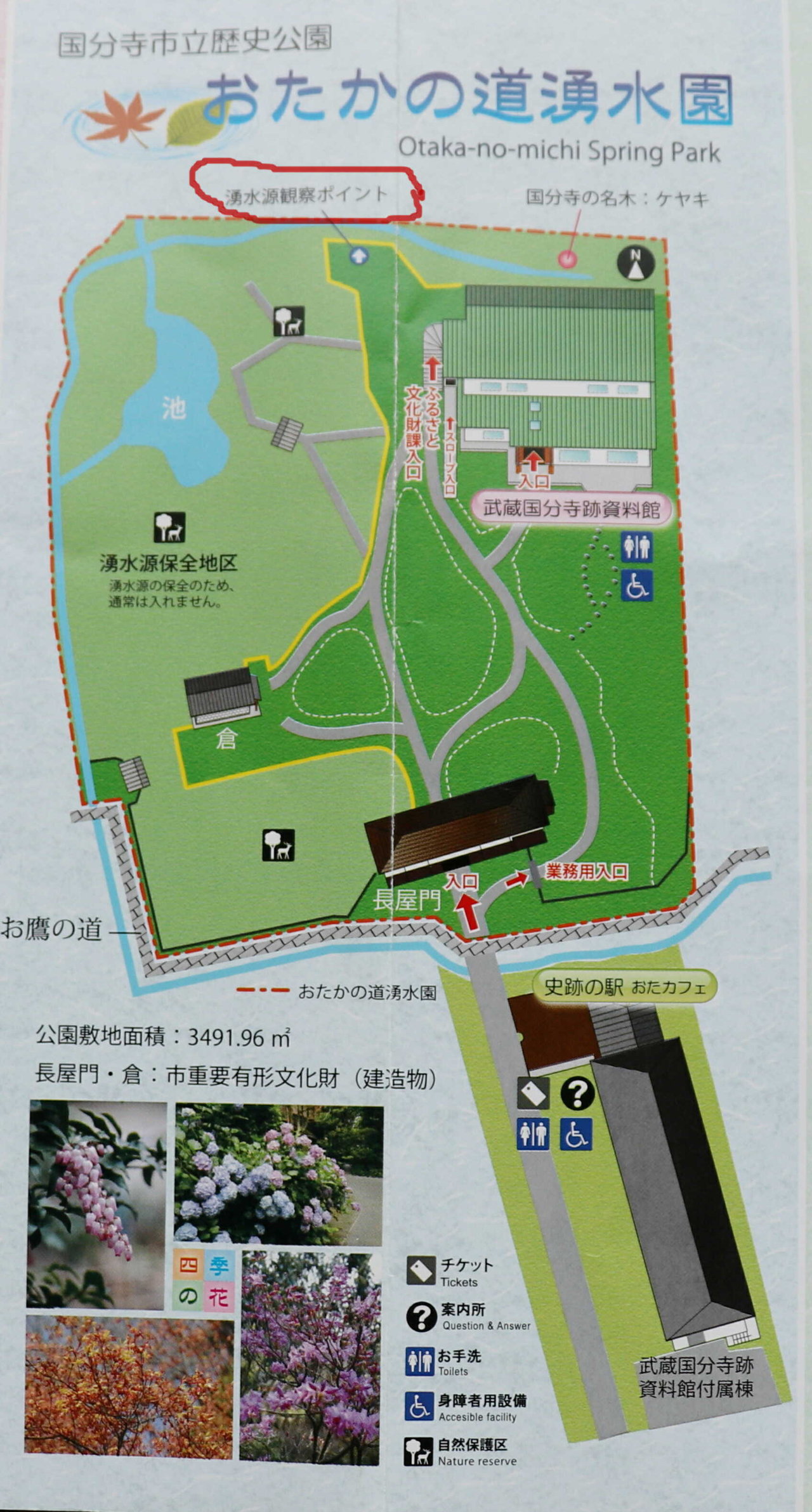 この付近の湧水は野川の源流となっています。この場所は「おたかの道湧水園」と呼ばれています。