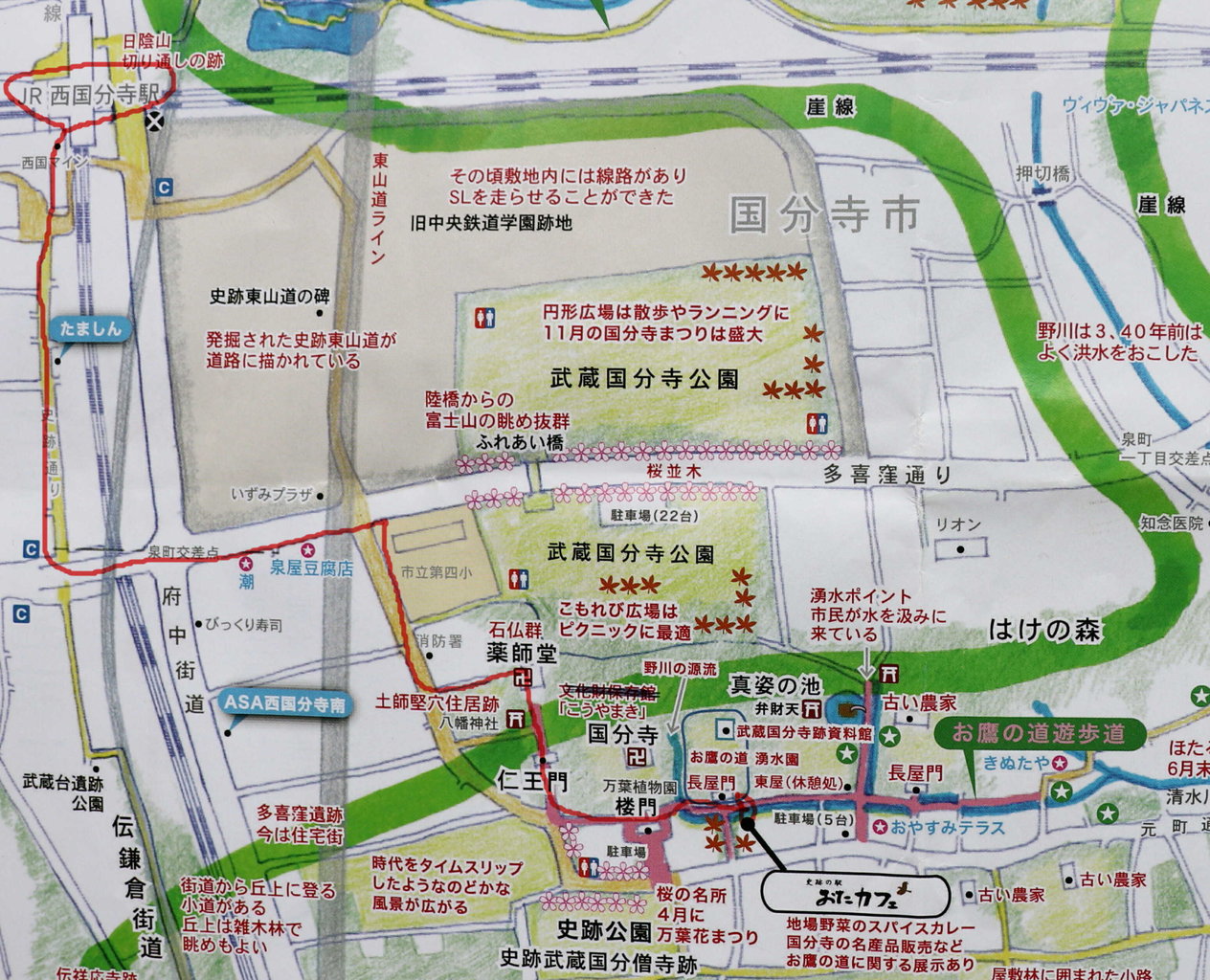 西国分寺駅からお鷹の道を歩きに行ってきました。武蔵国分寺跡 へ行ったときとは違うルートで出発です。