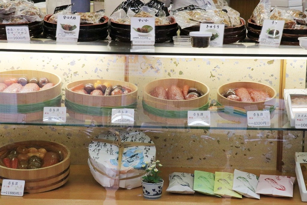 キュウリ、ウリ、スイカの奈良漬が列んでいます。