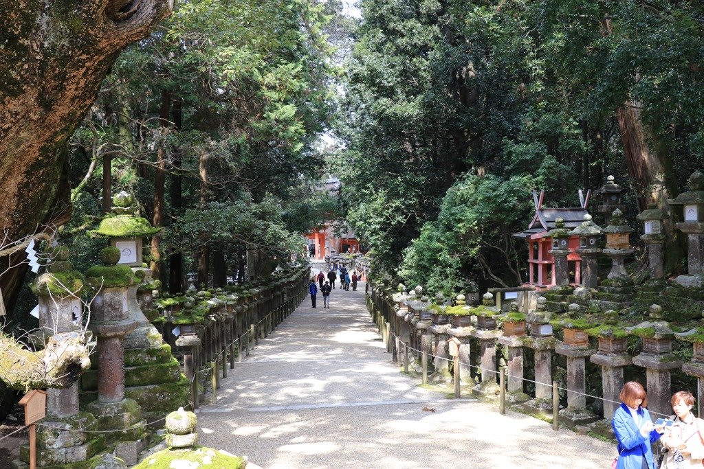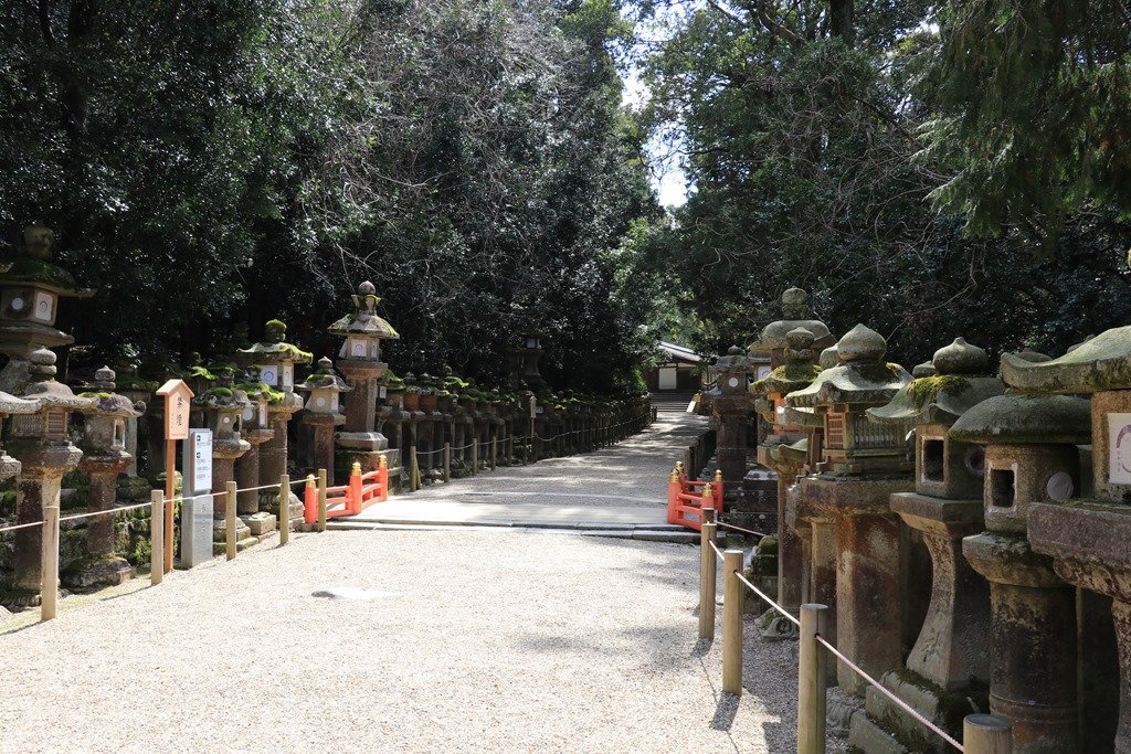 春日大社本殿へ行く人は多いですが、少し離れている若宮神社まで行く人は少ないようです。春日神社本殿から若宮神社へ通じる道は御間道(おあいみち)と呼ばれ、石灯籠はここに建てられ広がりました。
