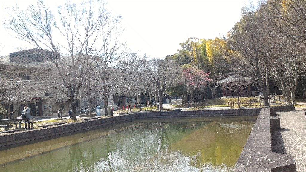 後ろの4階建ての建物は国際学生宿舎です。その後ろには学生寮が列んでいます。