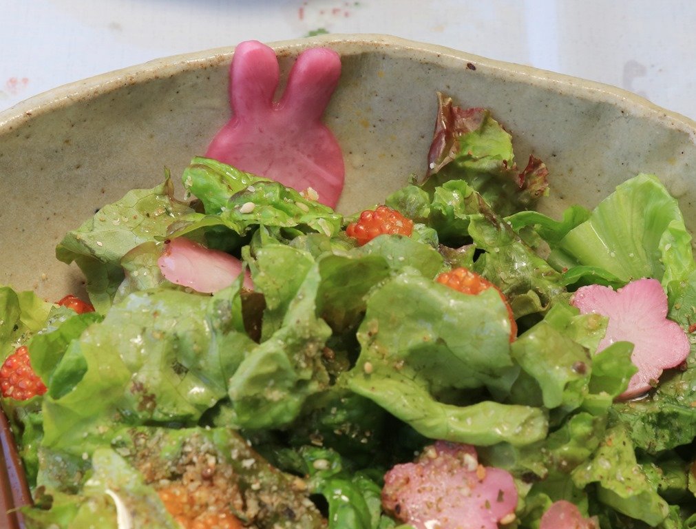 梅酢に付けた大根で作ったミフィーと桜の形のお漬物
