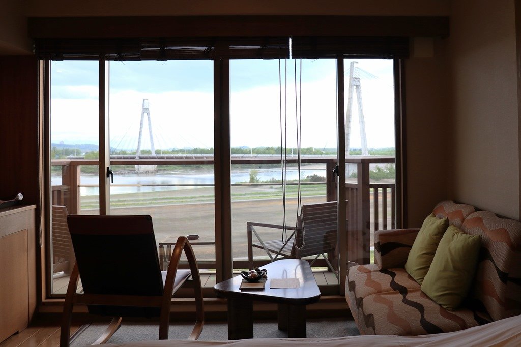 窓から十勝川に掛かる斜張橋が見える部屋でした。